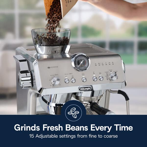 With 15 settings, the built in grinder ensures the optimal grind size for every roast level of coffee beans, single or double dose. The Italian made grinder uses Sensor Grinding Technology to deliver a precise, consistent dose of freshly ground coffee even when the grind settings are changed.