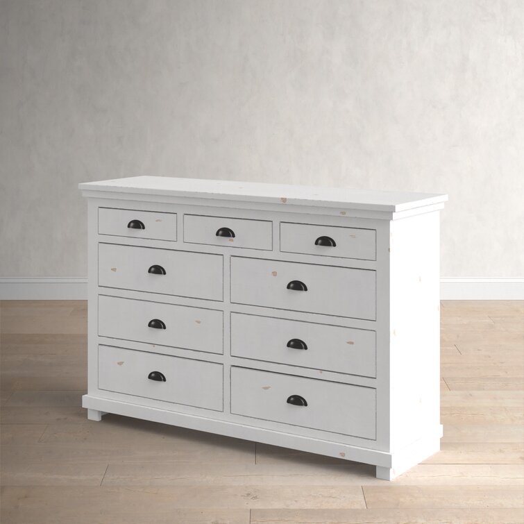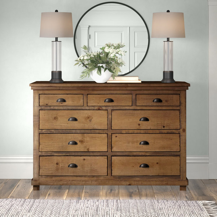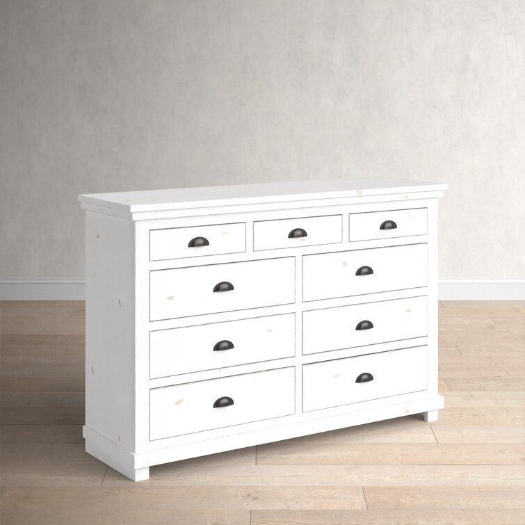 Why not bring home a piece of furniture that's as pretty as it is practical? Like this dresser that��s practically made for your family home: crafted by skilled artisans from solid pinewood, this chest is built with traditional crown moldings and removable cup-pull hardware that give it all the charm of a flea-market find. When it comes to storage space, nine deep drawers allow friends and family to stash away clothes and essentials so they can make the most of any space. And we love how this piece comes in multiple colors so you can choose the one that works best for your humble abode. You can enjoy peace of mind since it includes a wall attachment to prevent tipping, which is especially useful if you have little ones.