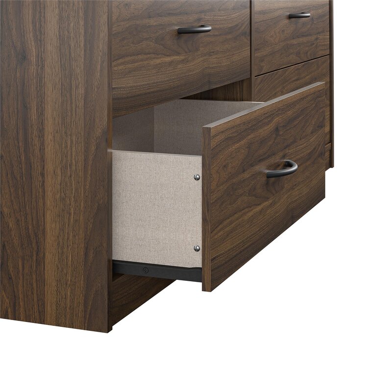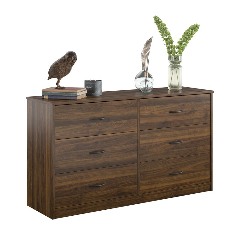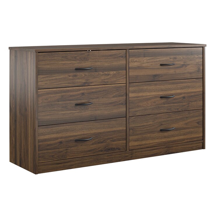 Dressers aren't just for keeping your wardrobe tucked away �� they also add style to your restful retreat, offer a spot to stage a display that's all your own, or even work double-time as a vanity when paired with a mirror. Take this one for example: understated enough for any ensemble, it pairs a clean-lined manufactured wood frame with a neutral finish for versatility.