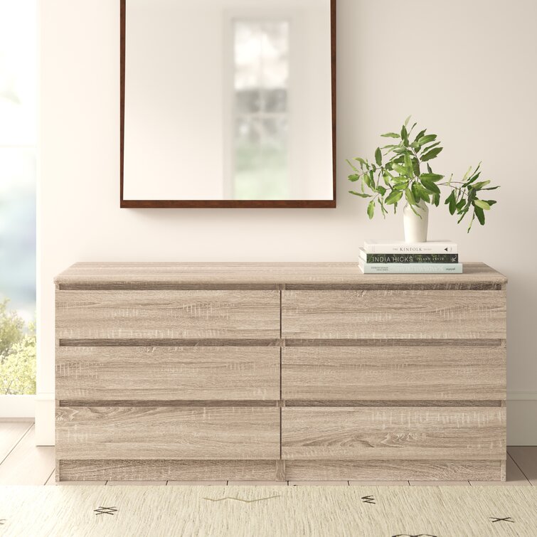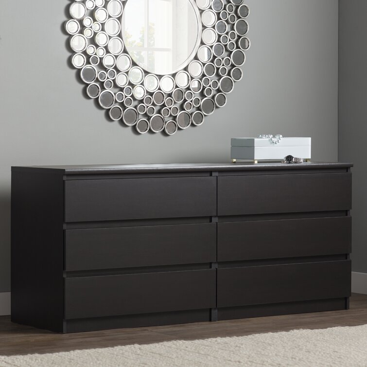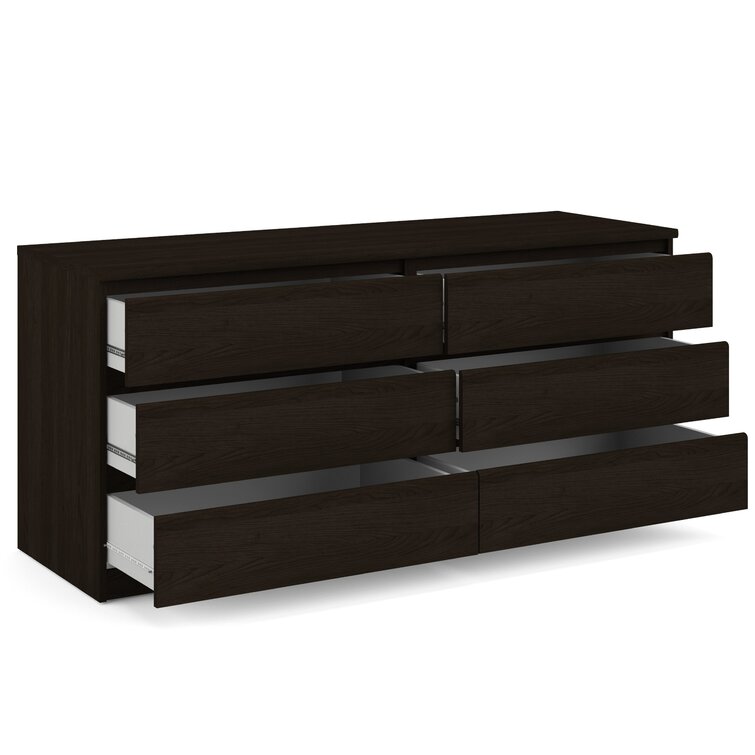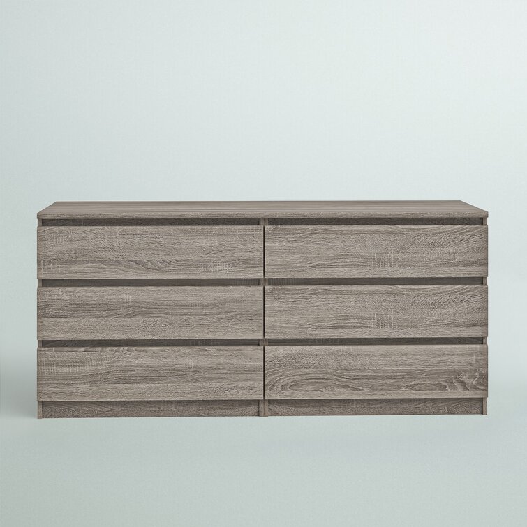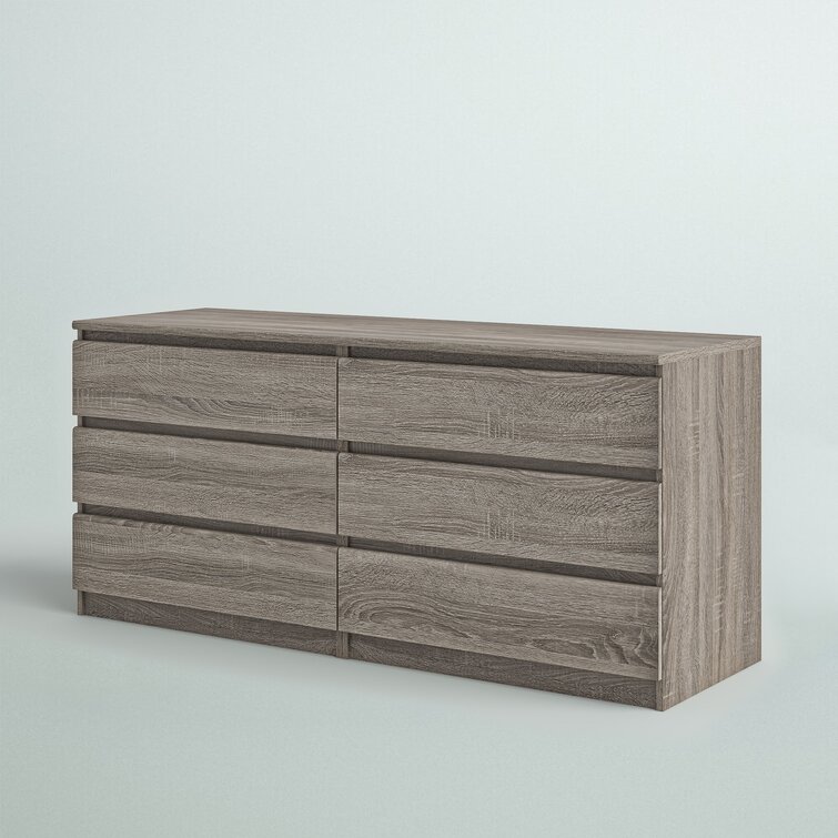 Ideal for understated bedroom arrangements, this Kepner 6 Drawer 60.5" W Double Dresser showcases a clean-lined silhouette and neutral, solid finish that blends in with just about any color palette that you dream up. It features six drawers that open smoothly on ball-bearing glides, revealing ample space to tuck away spare linens, shirts, pants, and other wardrobe must-haves. The top leaves plenty of room to turn it into vanity and add a mirror, or display a table lamp and some framed photos. 3D Interactive assembly through BILT. Instructions for this product are available through the free BILT app. Find a revolutionary way to assemble & install products with voice, text, & interactive animated images. Interior drawer parts are white for the truffle color option.