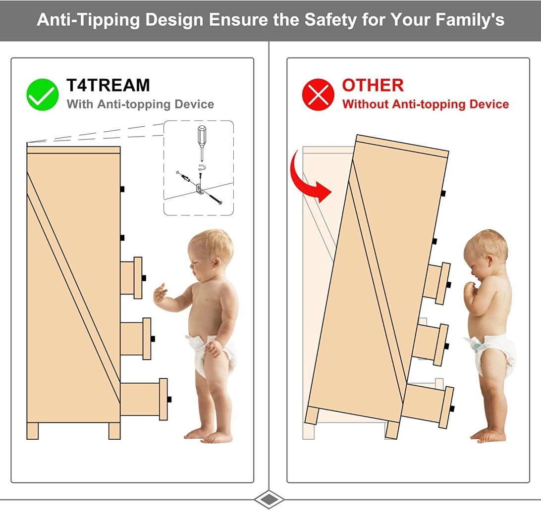 • ��Sturdy & Durable��The bedroom dresser is made of durable engineered wood for long term use, scratch resistant. No strong odor.The widened 2’’*2’’ dresser legs made the dresser does not slide easily, provide great durability and stability. With a support leg in the middle for added weight support.