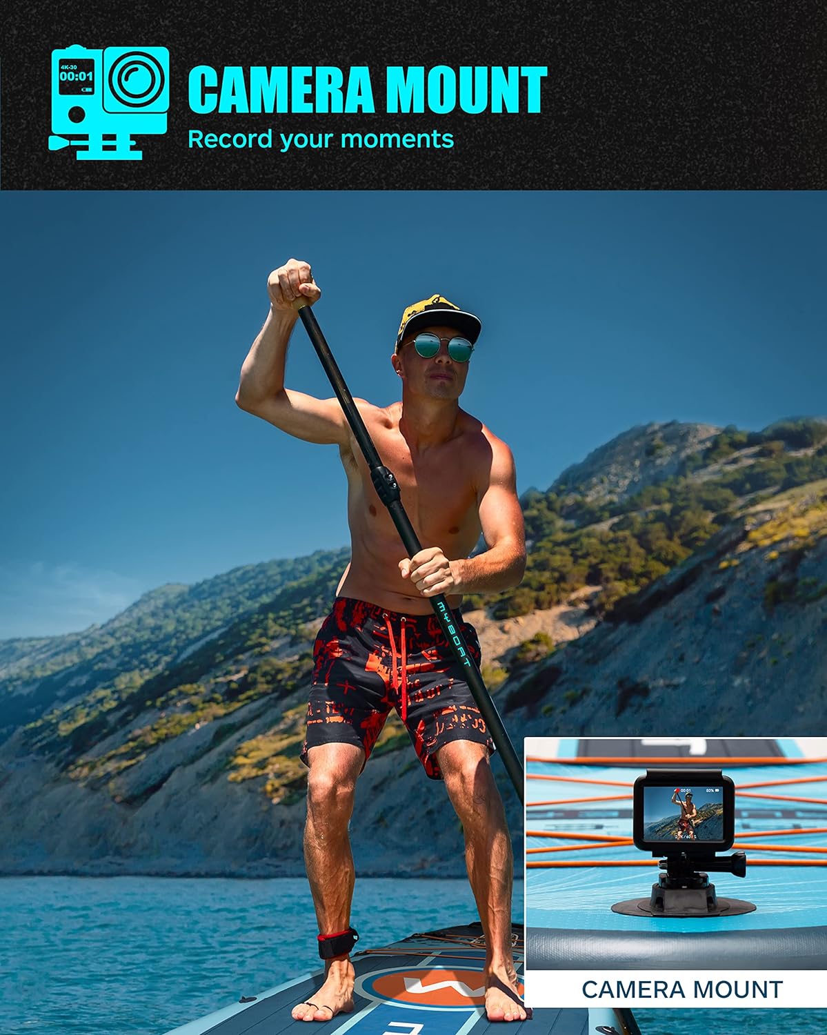 ��COMPLETE PADDLEBOARD KIT & 24H SERVICE��All professional accessories: safety leash, hand pump, 3 removable fins, length-adjustable strong paddle, mobile phone waterproof bag, 5L waterproof backpack. Stand up inflatable board is perfect for professional athletes, sea sports enthusiasts, beginners, elder players, and youth. MYBOAT offers 1 year warranty for your order, if any questions, please feel free to contact us!