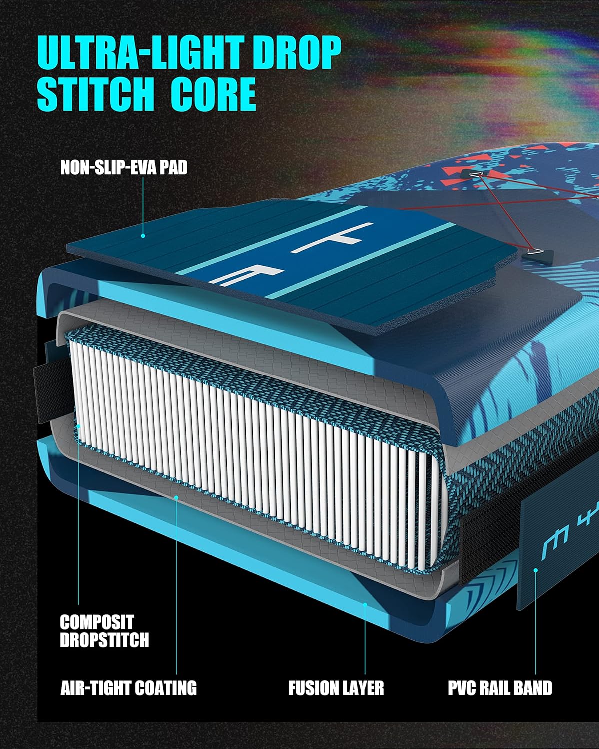 ��STABLE & EXTRA LONG/WIDE��An extra-wide 34’’ makes MYBOAT SUP inflatable paddle board the most stable paddle board on the market. It's easy for beginners to stand up and balance on the SUP board. The wide no-slip deck and performance shape make for fast, fun paddling for all skill levels, perfect for using the ocean, lakes and rivers. You can also fishing on the paddle board. It is an ideal all round paddle board for adults, teens, youth and with pets of all skill levels.