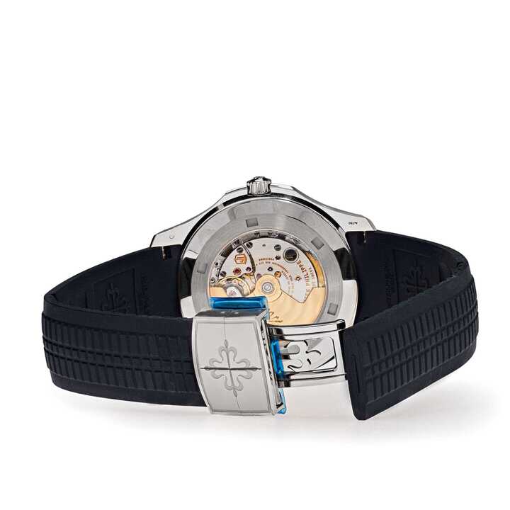 The watch is paired with a matching blue composite strap that offers durability while adding to its sport-luxury aesthetic. Known for its refined materials and limited availability, the 5168G-001 has a strong presence on the secondary market, appealing to collectors who value the Aquanaut��s distinctive style, contemporary size, and exclusivity within Patek Philippe's lineup.