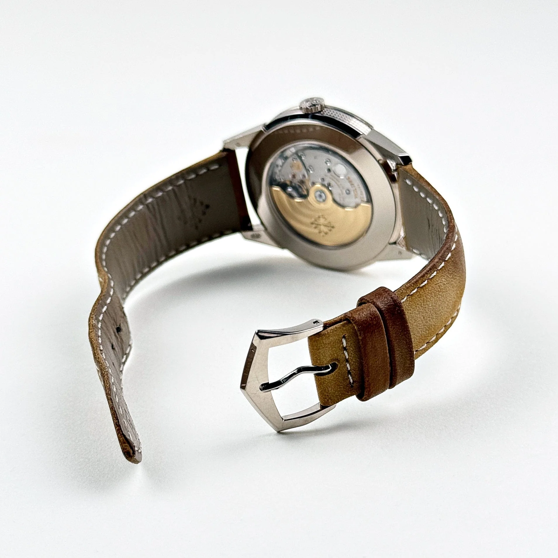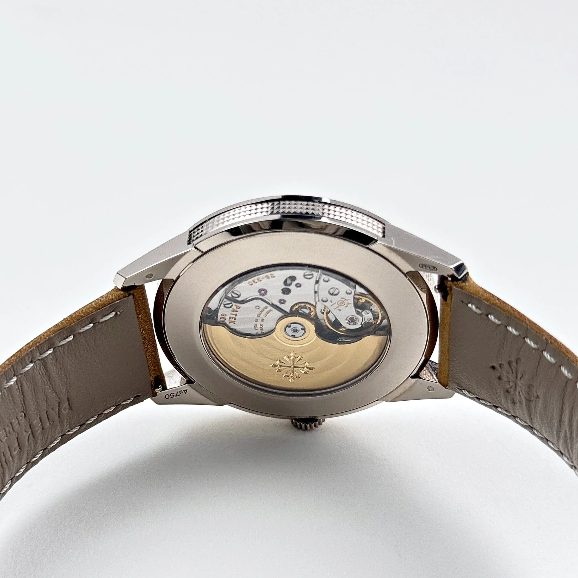 The Patek Philippe Calatrava 5226G-001 brings a fresh, contemporary twist to the classic Calatrava line, crafted in 18k white gold. Its 40mm case features a unique guilloch茅 hobnail pattern along the caseband, creating a subtle yet elegant texture that sets this reference apart.