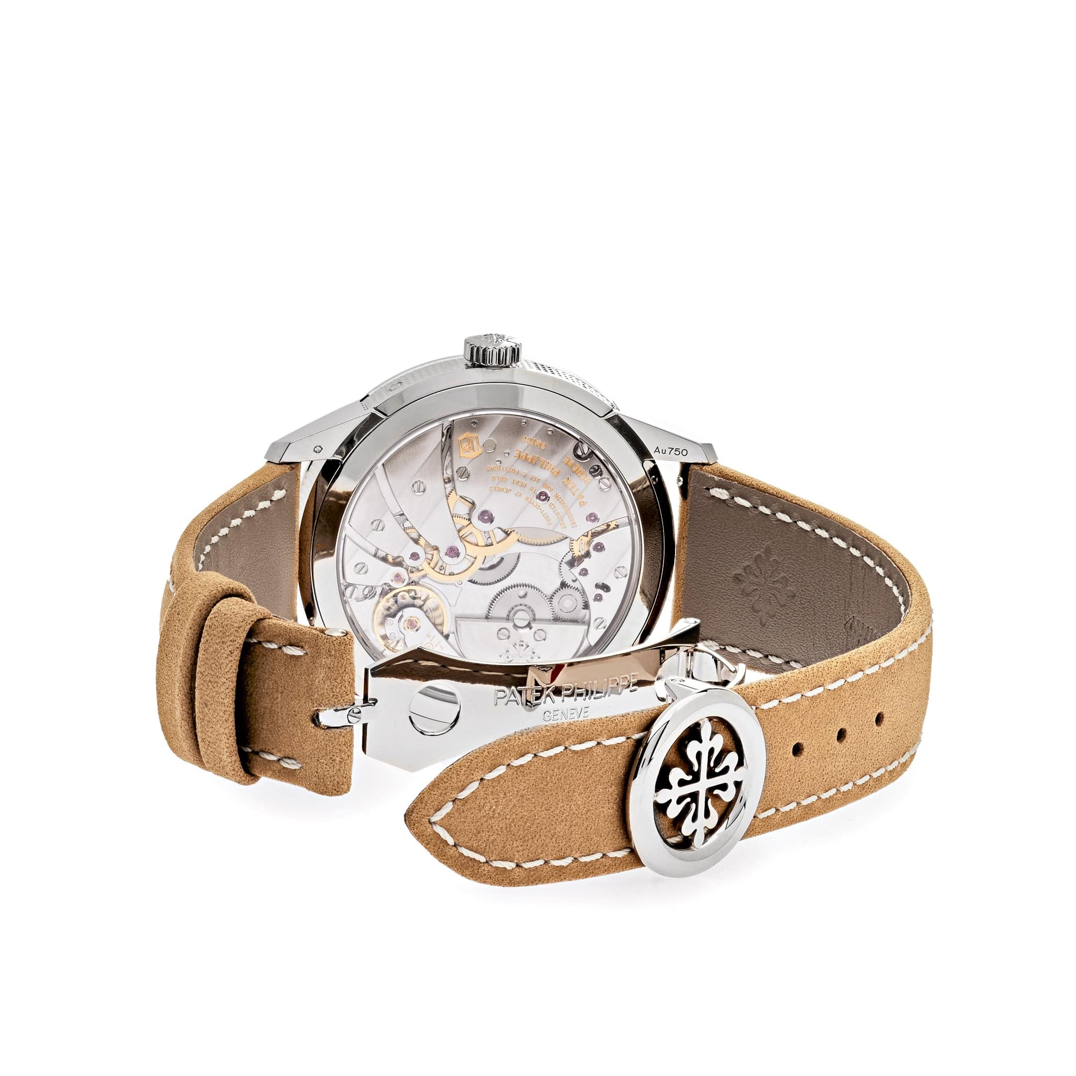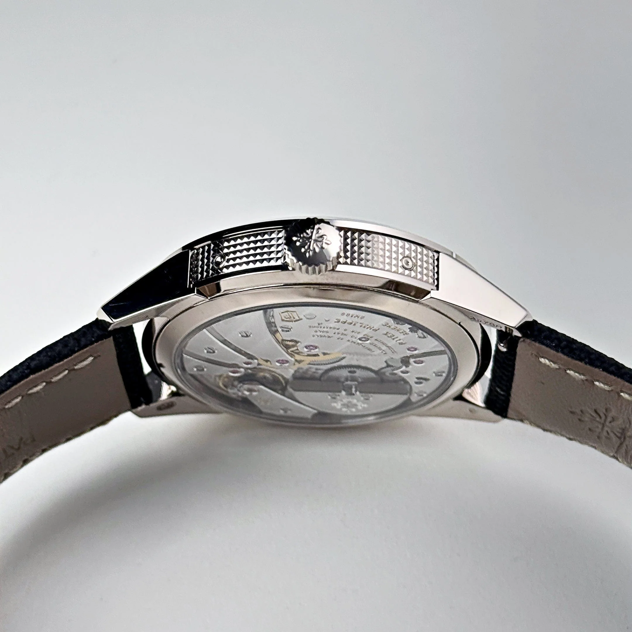 The grey dial��s textured finish, paired with the warm glow of the 18k white gold case, brings a modern look to this classic design. The 41mm case size and applied numerals provide a balanced and contemporary presence on the wrist. For those seeking a functional timepiece with understated sophistication, the 5326G-001 offers a standout choice in the Patek Philippe lineup.