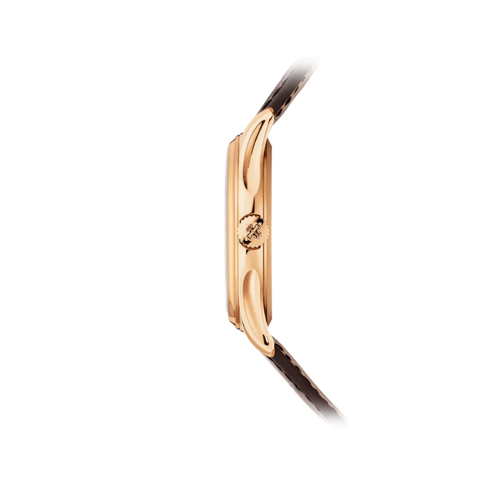 The Patek Philippe 5327R-001 in rose gold with a white dial is a refined example of Patek Philippe��s mastery of horology. The perpetual calendar complication offers precision timekeeping with indicators for day, date, month, and moon phase, all displayed elegantly on the clean white dial. The rose gold case adds a warm, sophisticated touch, enhancing its timeless appeal. A rare and highly sought-after piece, this watch is perfect for collectors who appreciate both technical sophistication and luxurious design.