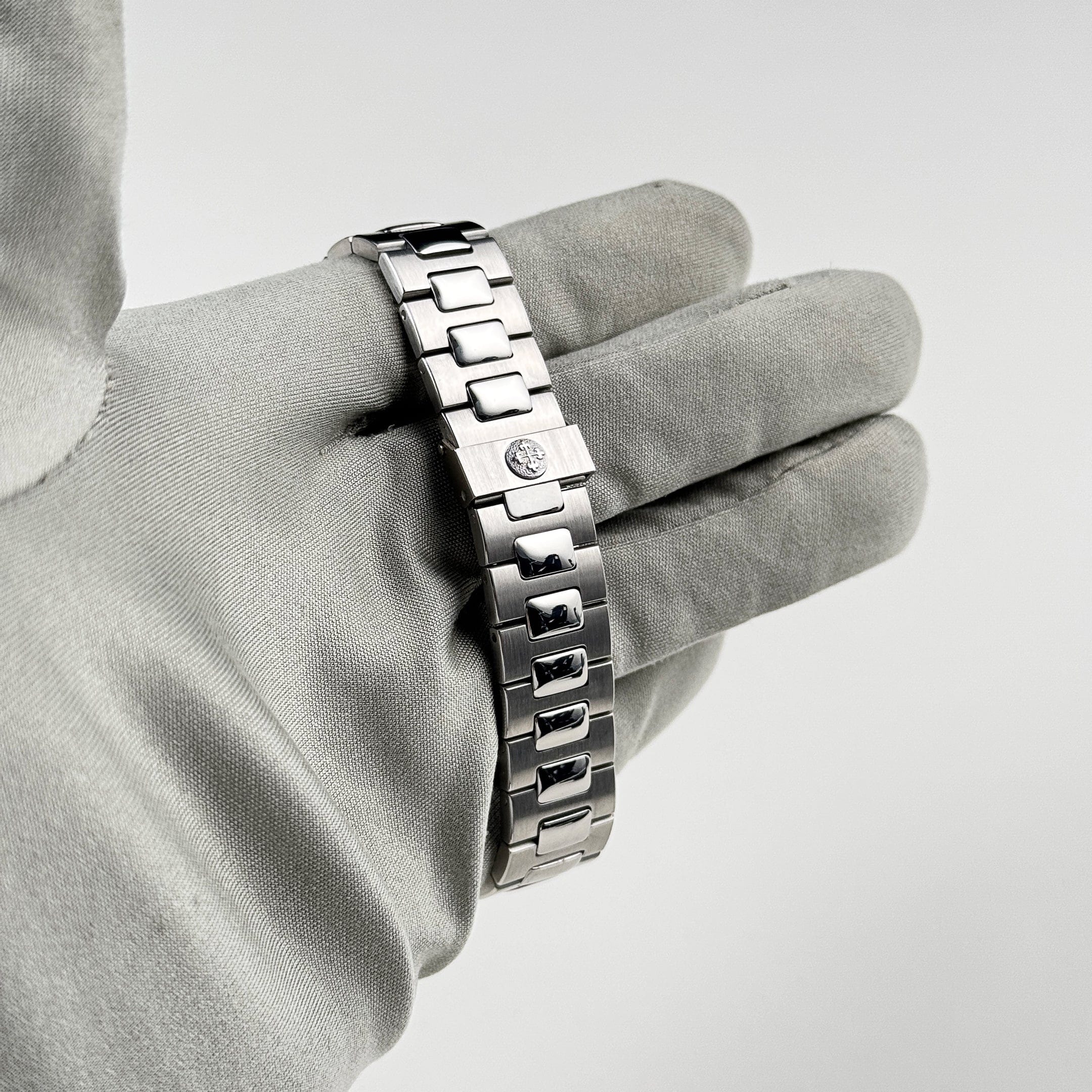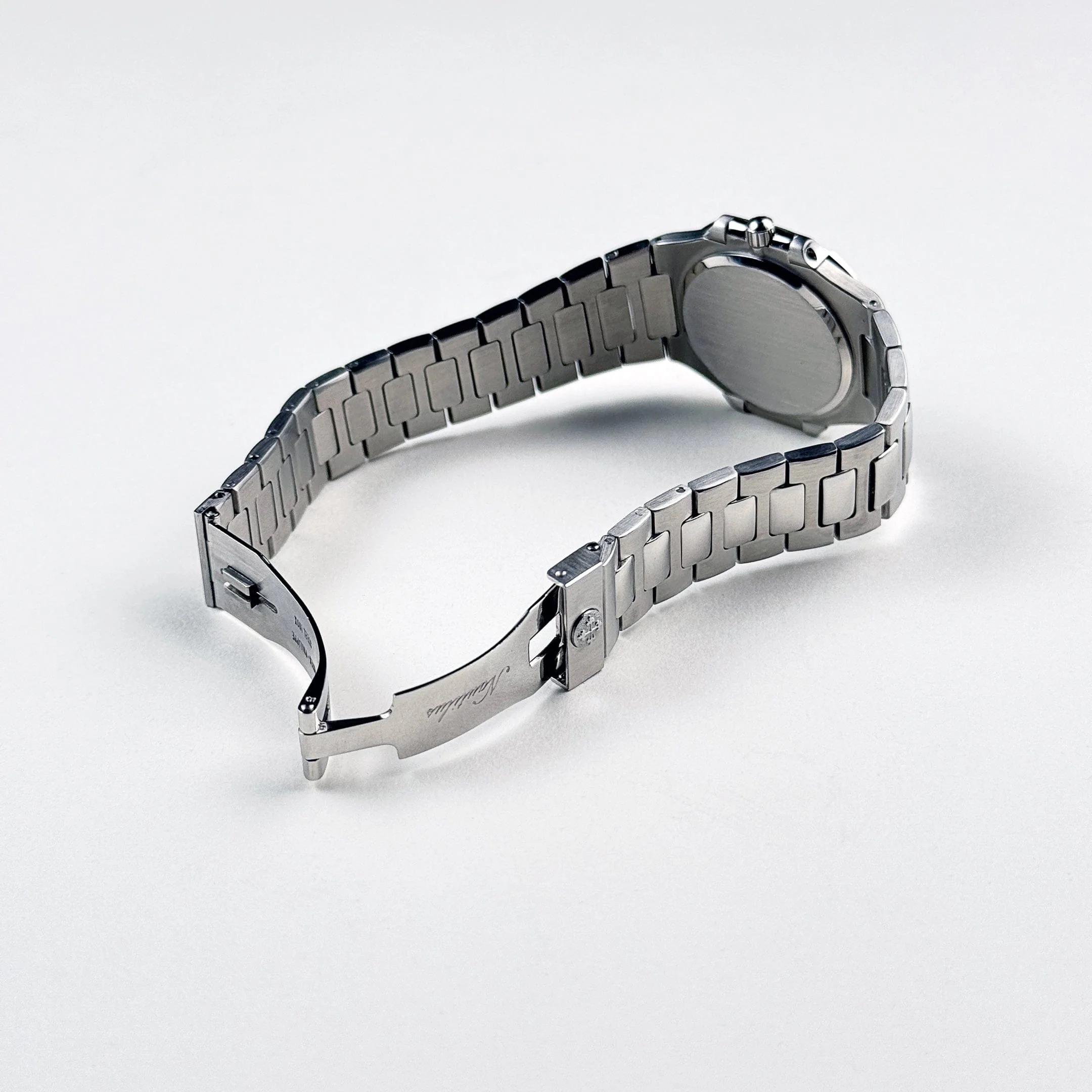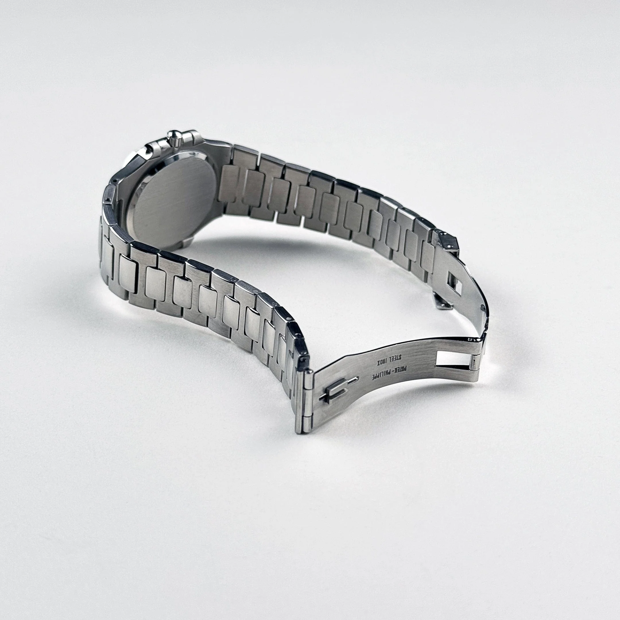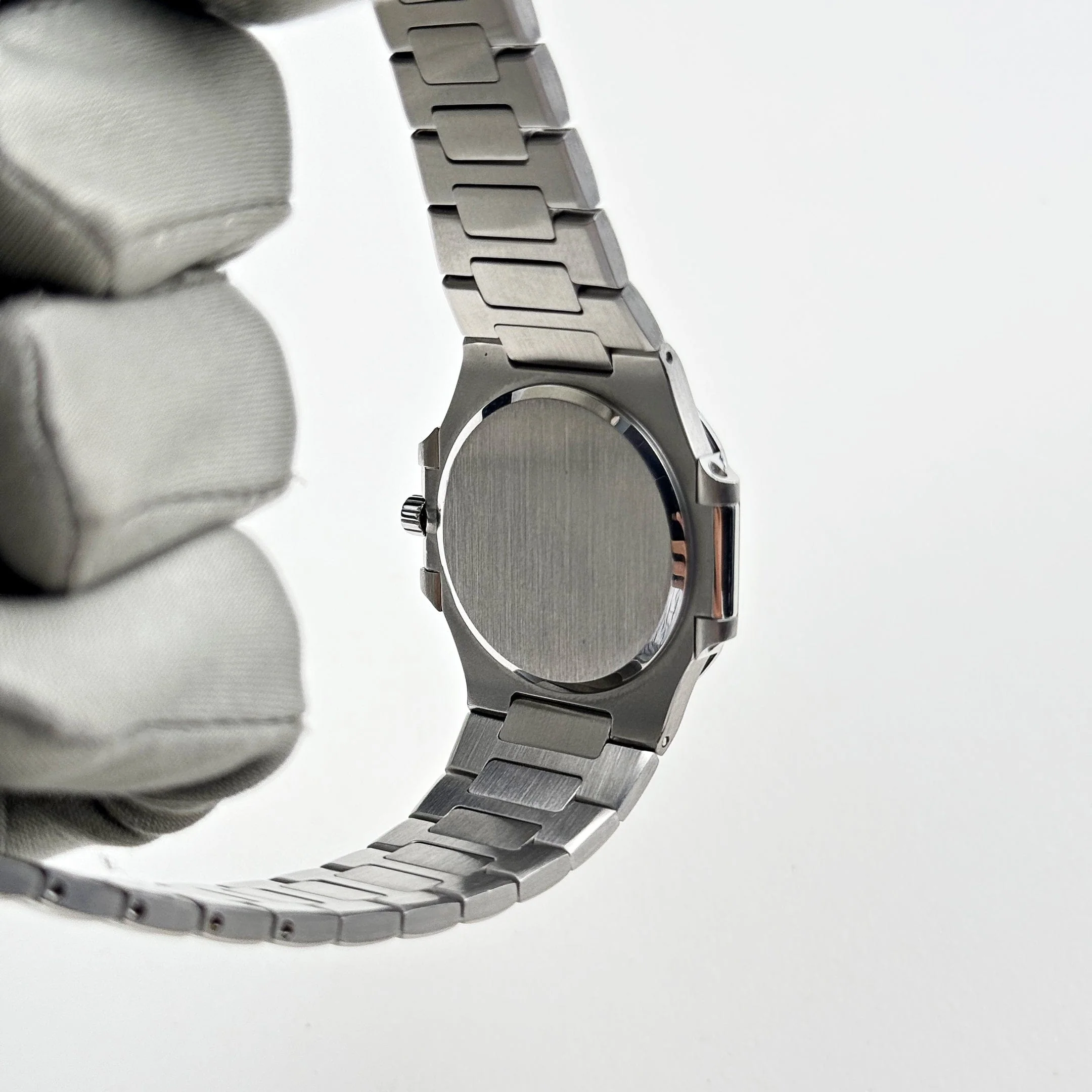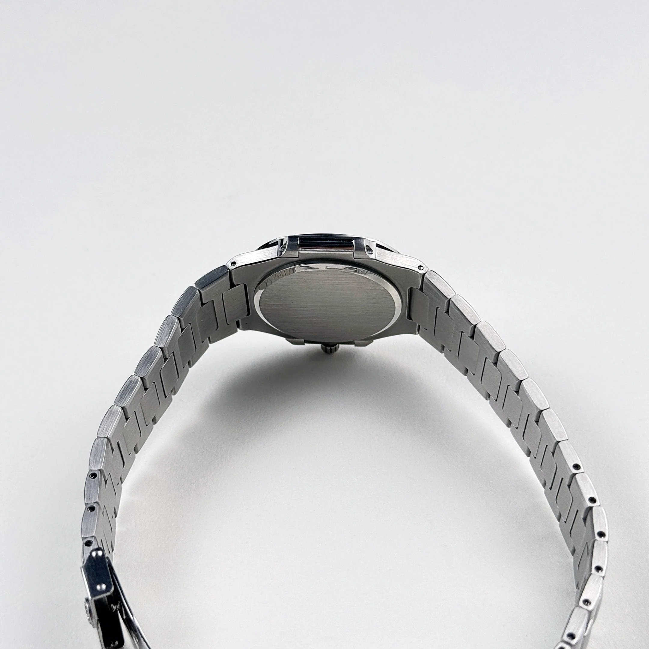 The Patek Philippe 3900/1A 'Ladies' Quartz in stainless steel with a blue dial combines the timeless Nautilus design with the convenience of quartz movement. The vibrant blue dial adds a modern pop of color to the classic stainless steel case, making it a versatile and elegant piece. Ideal for those seeking a sleek, high-quality timepiece with the precision of a quartz movement.