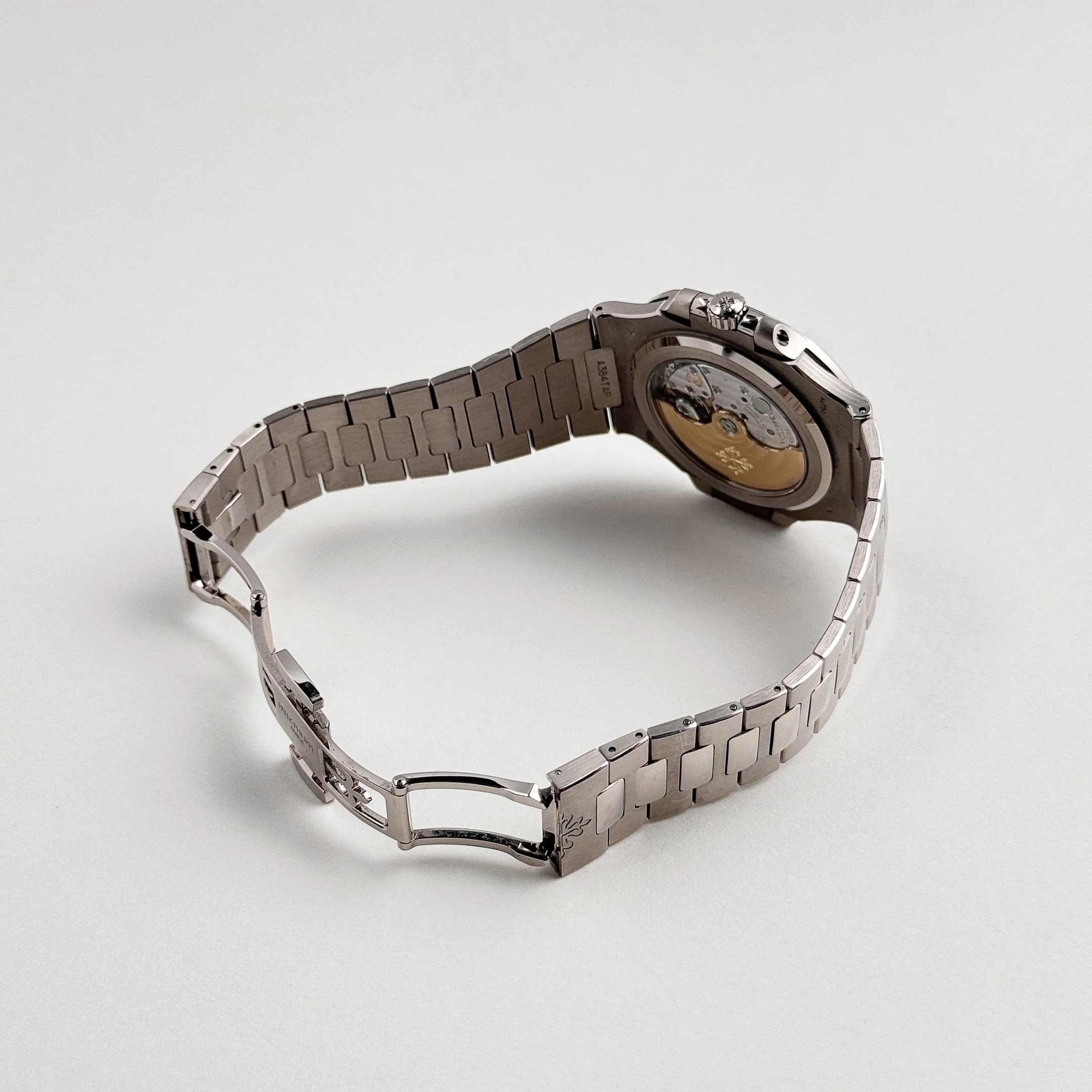 Inside, the Nautilus 5811/1G-001 houses Patek Philippe’s Caliber 26-330 S C, an automatic movement known for its precision, durability, and long power reserve. The integrated white gold bracelet, a defining element of the Nautilus collection, is both comfortable and stylish, seamlessly complementing the watch’s overall aesthetic. This timepiece offers a blend of sporty sophistication and technical excellence, making it a remarkable addition to any collection.