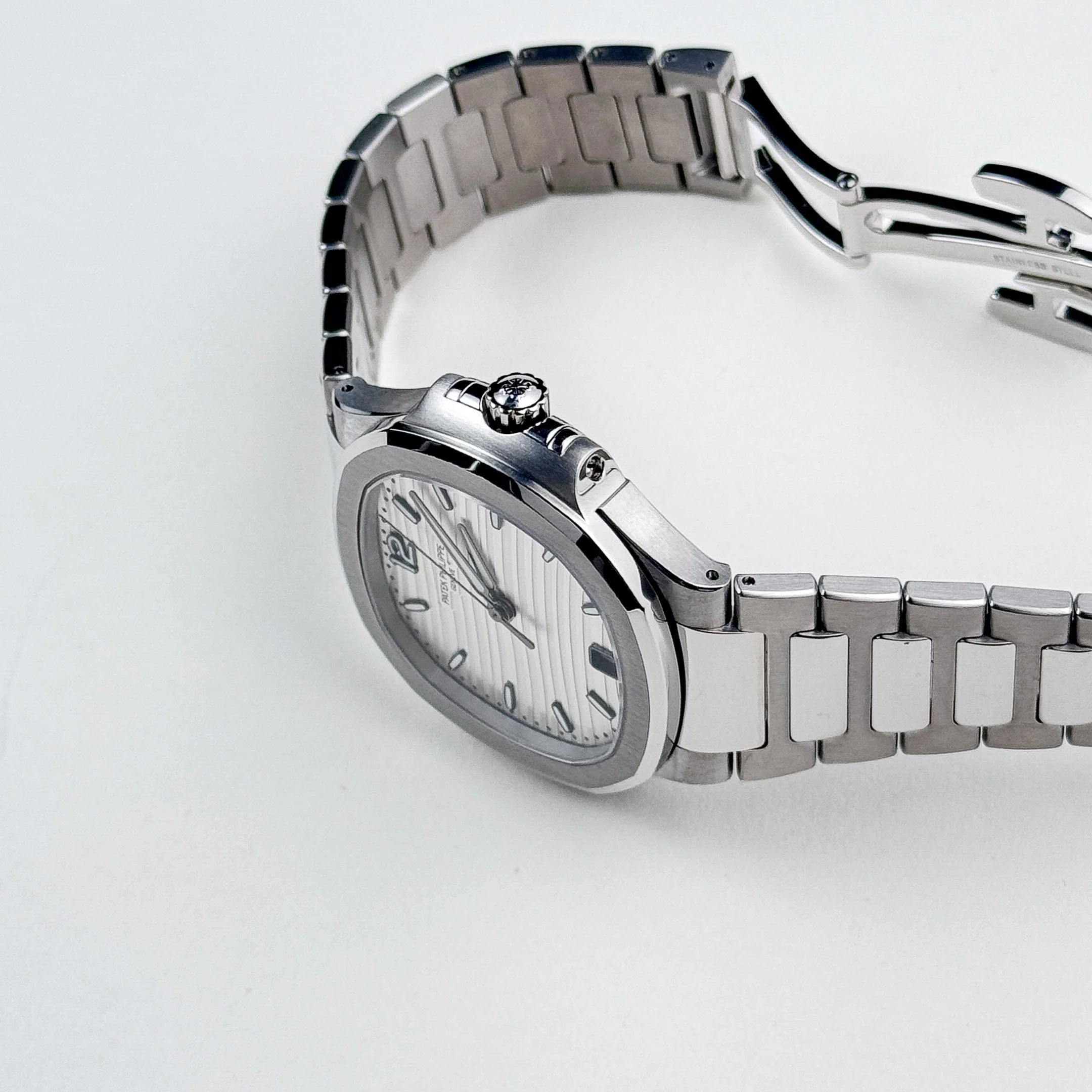 The silvery opaline dial is subtle yet striking, adorned with a delicate wave pattern that adds texture and depth. Gold applied hour markers with luminescent coating enhance legibility while maintaining a refined aesthetic. Powered by the self-winding Caliber 324 S C, this Nautilus offers reliable performance, a date display at 6 o��clock, and a seamless blend of elegance and practicality. Perfect for both casual and formal settings, the Nautilus 7118/1A-010 represents Patek Philippe��s timeless approach to watchmaking artistry.