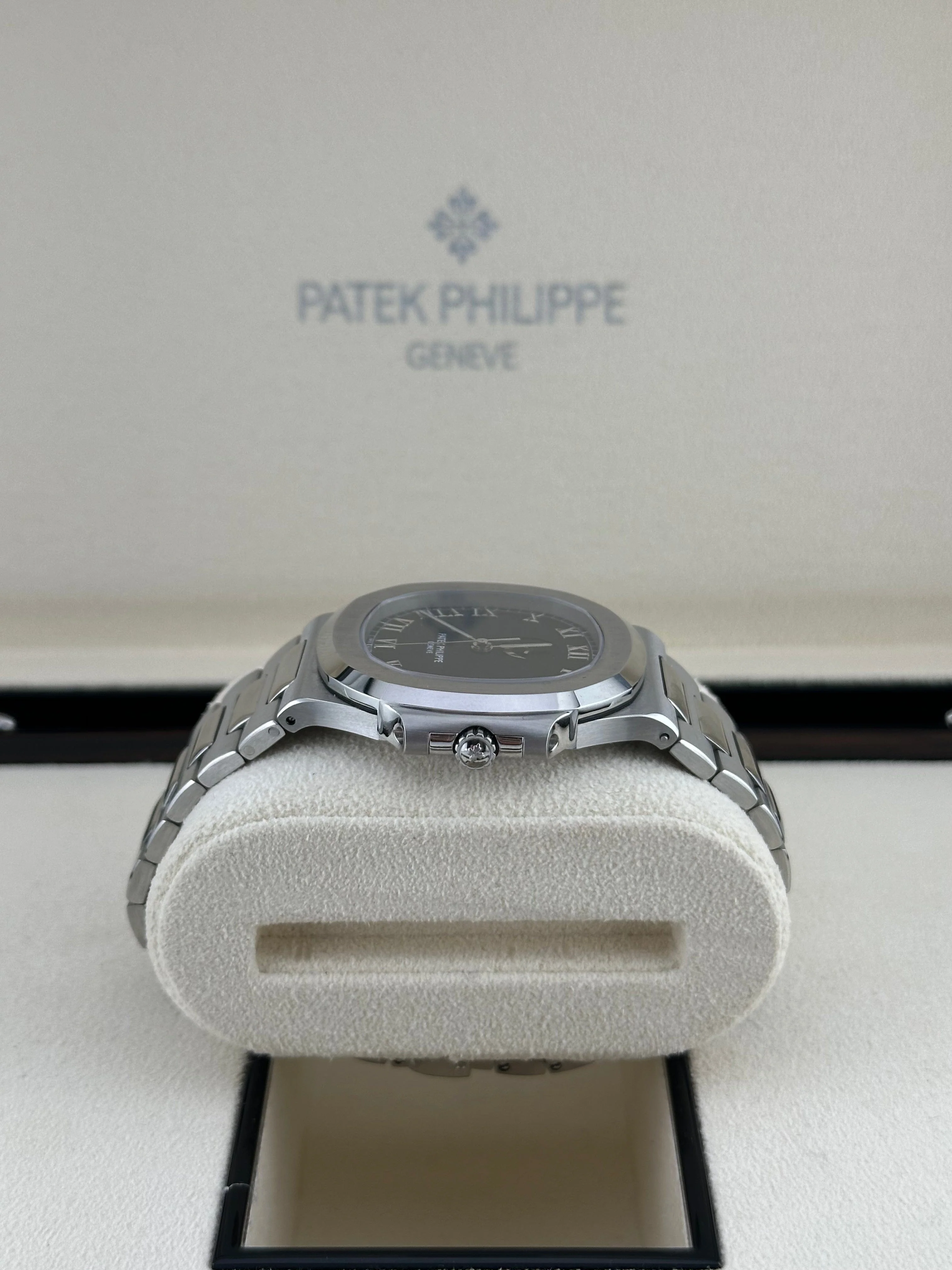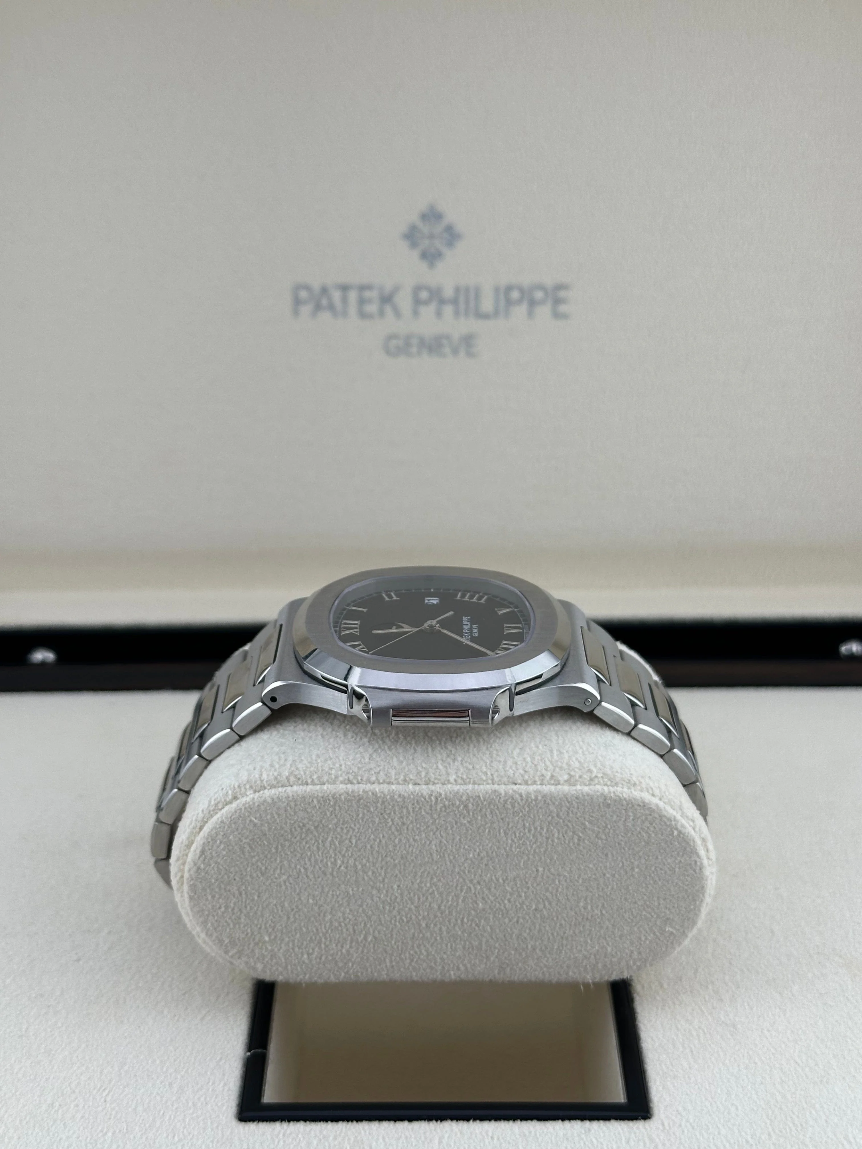 A great addition to the Nautilus Collection is the 3710/1A-001 'Jumbo' Power Reserve Indicator. The first Nautilus to feature a complication other than the date function, including hours, minutes, seconds, date, and the power reserve indication at 12 o'clock.�Now available in a jumbo 42mm format, the watch is designed with a stainless steel bracelet, a satin-finished bezel, stainless steel case and a black dial with luminous roman numerals.