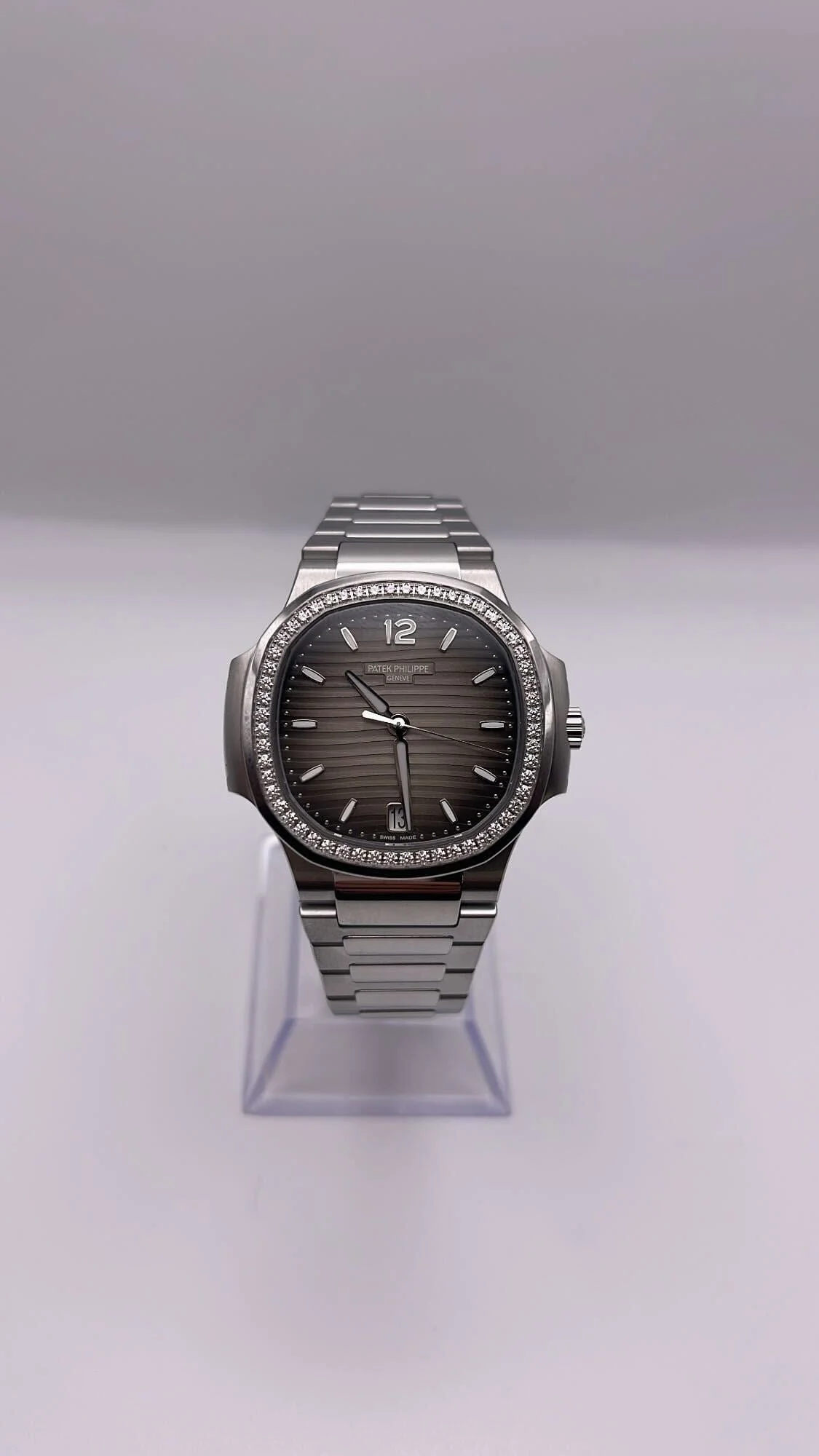 Patek Philippe Nautilus 7118/1200A-011 Ladies' Stainless Steel Gray Dial Diamond Bezel