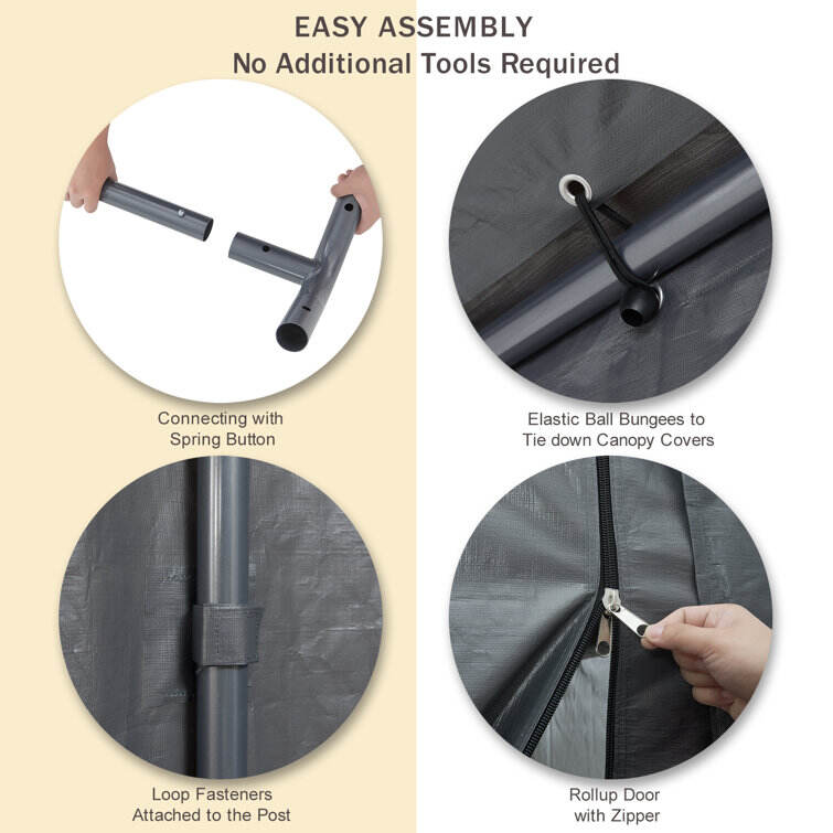 - A connector using art-welding, elastic ball strap fasten the canopy to the frame, come with ground stakes and guy ropes for extra support. and keep your belongings safe and secure.