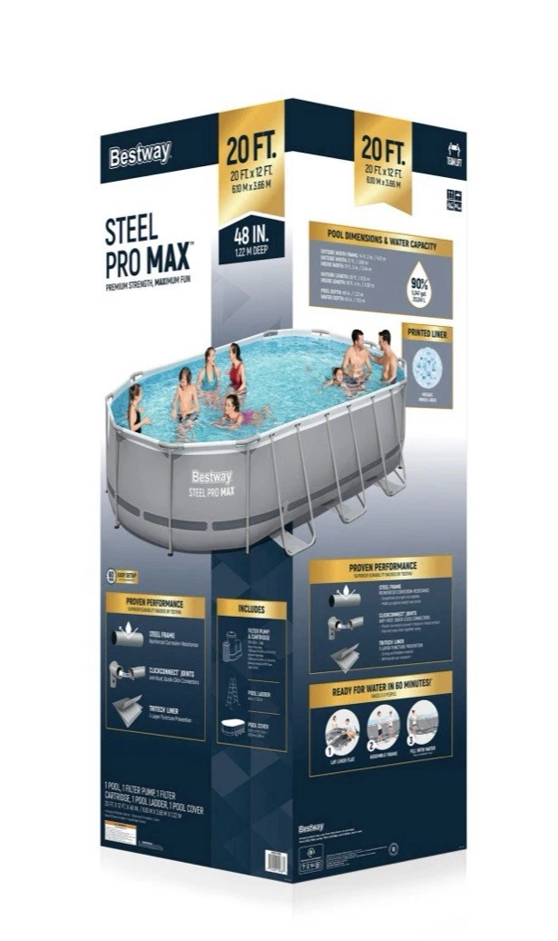 - All ages will enjoy swimming all summer long in the 20-foot by 12-foot by 48-inch above-ground pool