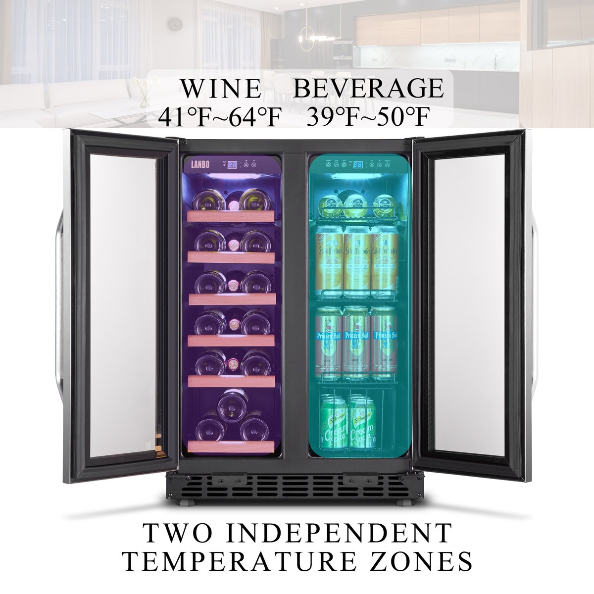 Dual Temperature ZonesDual temperature controls for left and right compartments, this wine and beverage cooler allows you to customize the temperature for your different wine storage needs.