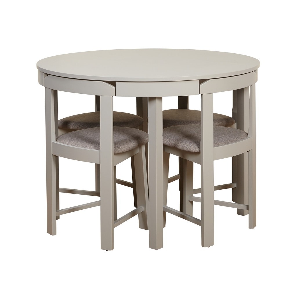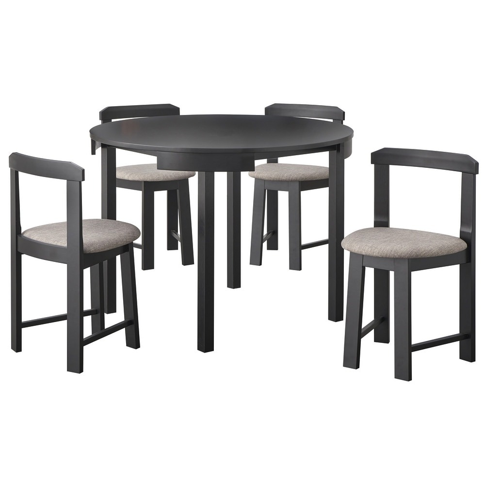 Upgrade your small dining space with the Harrisburg Tobey Compact Dining Set. With a classic round table and four matching chairs that tuck conveniently under the table, this set is perfect for small spaces. Made of durable rubberwood, MDF, and veneers, the table is both sturdy and attractive. Choose between vegan leather or fabric seat upholstery to match your style. Available in Walnut, Grey, Black or White finishes.