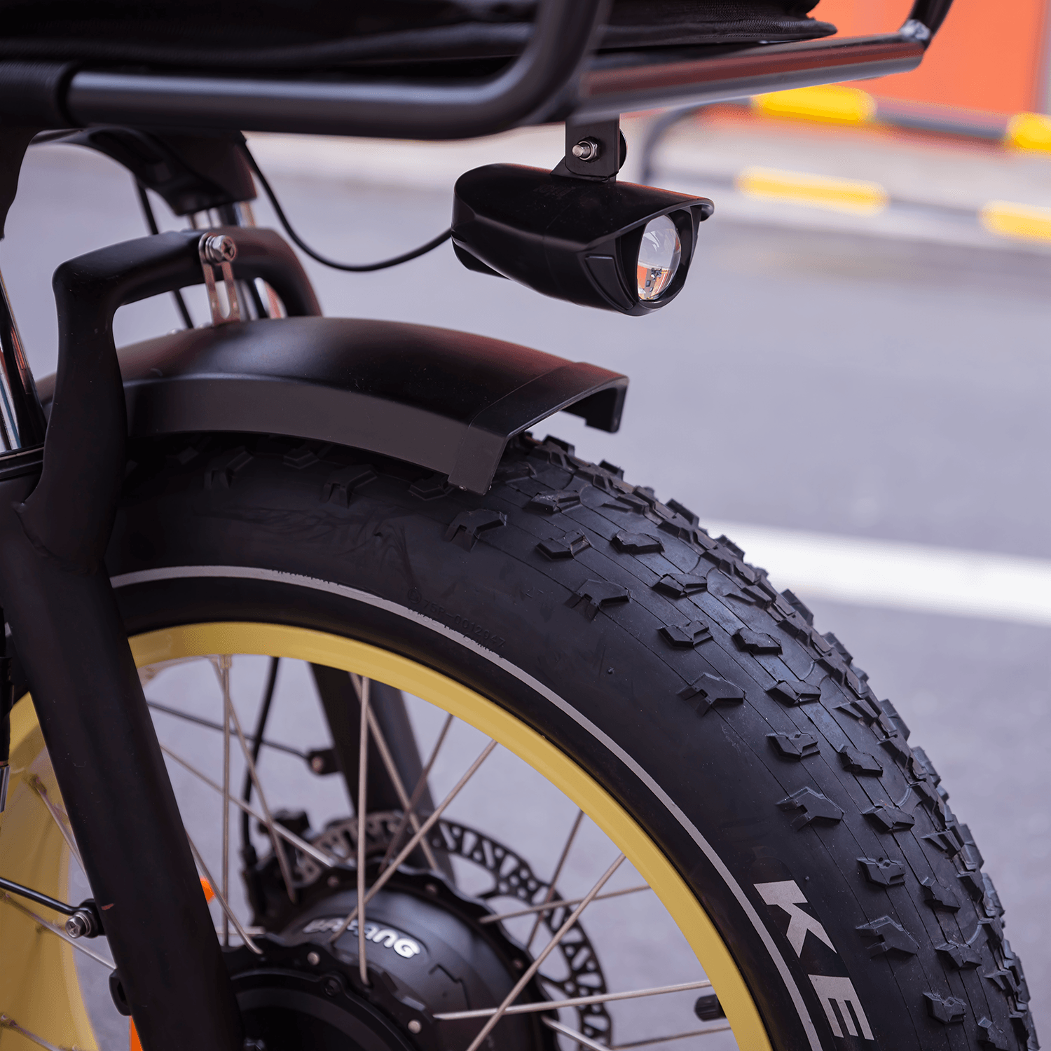 This electric bike has up to 750W high speed brushless BAFANG Motor which provides strong power, max torque 80NM. Switching gears on different roads makes riding easier and saving energy. SHIMANO 7 SPEED SHIFTER works in both electric and pedal assist modes. It can run easily in many different circumstances. Come with fenders and rear rack.