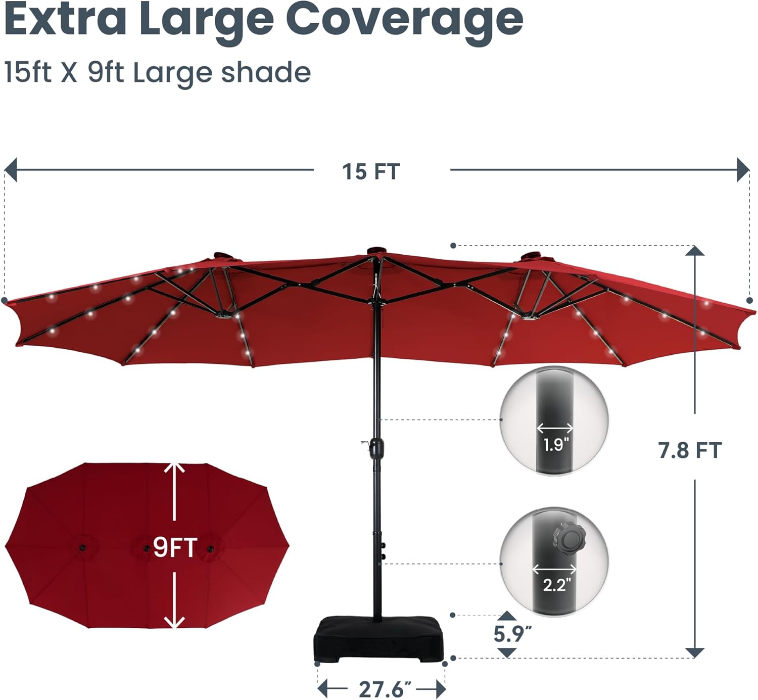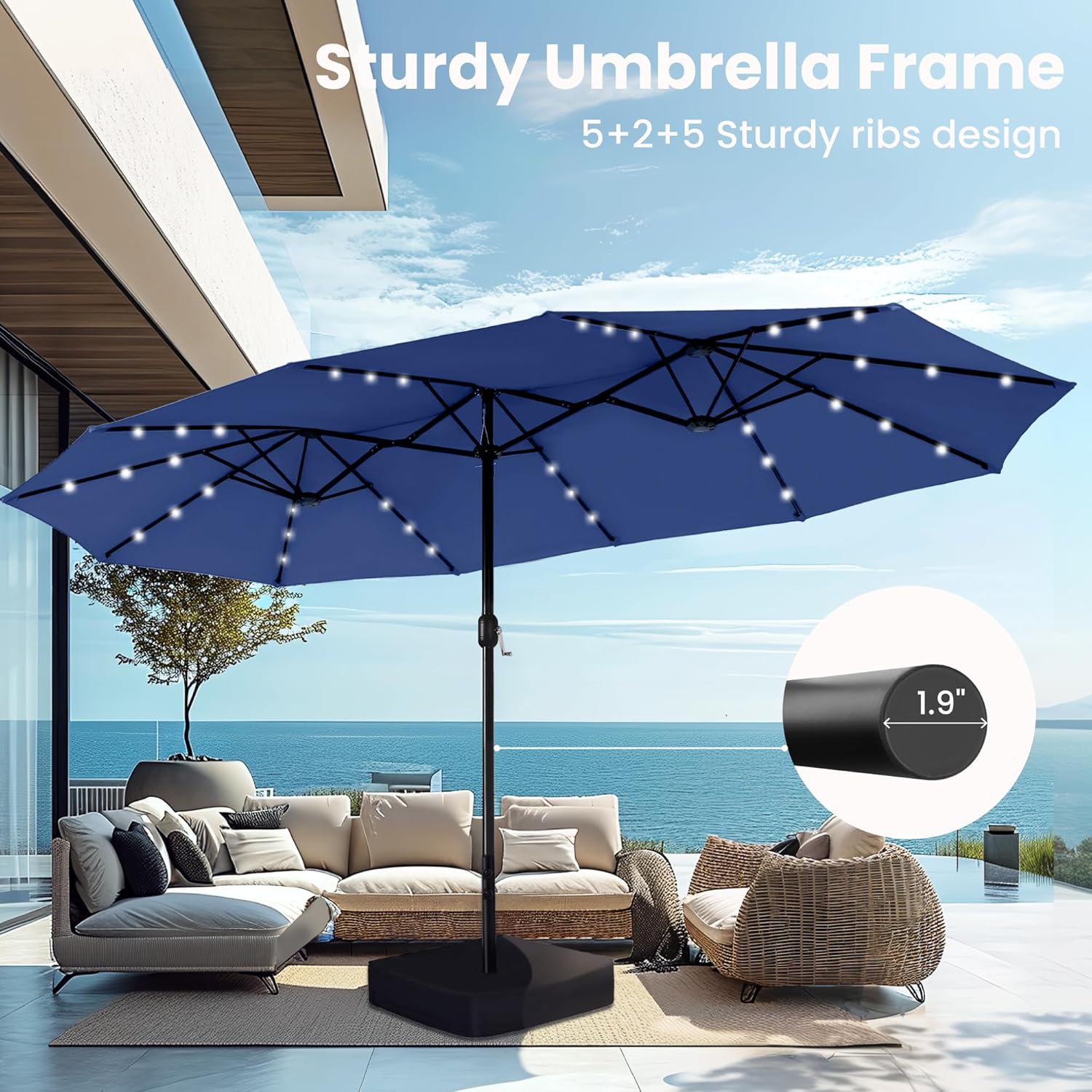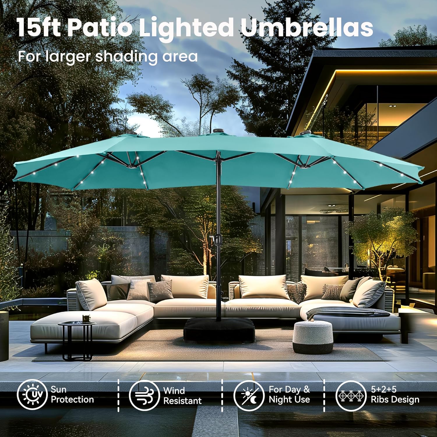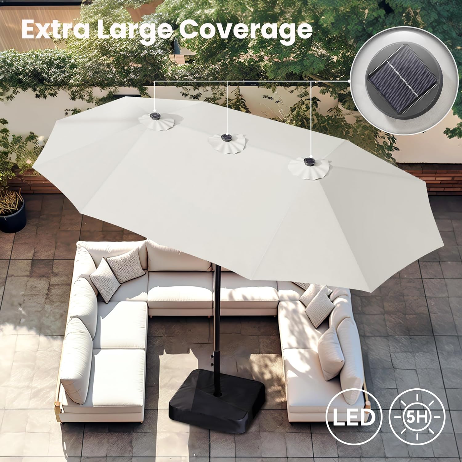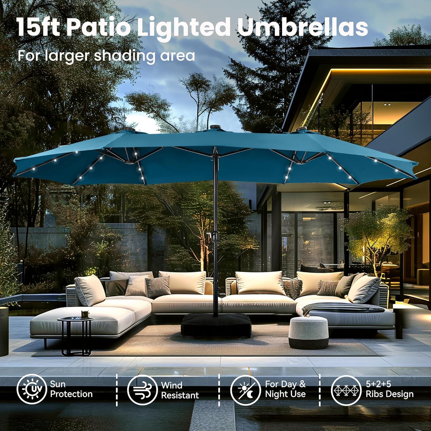 Extra Large Patio Lighted Umbrella: PHI VILLA this 15 ft large patio umbrella features a double-sided design, which gives you maximum shelter that brings you large shades for your outdoor enjoyment. Perfectly suitable for residential and commercial locations
