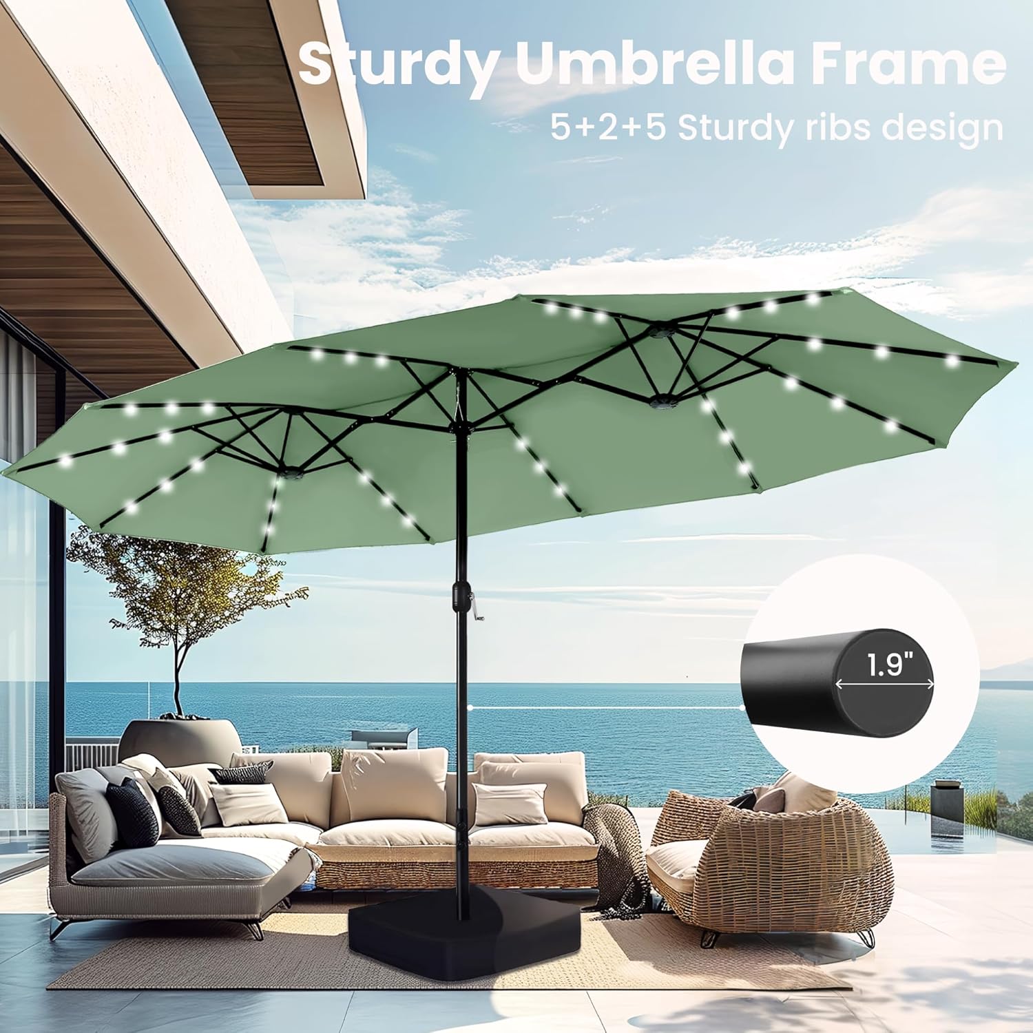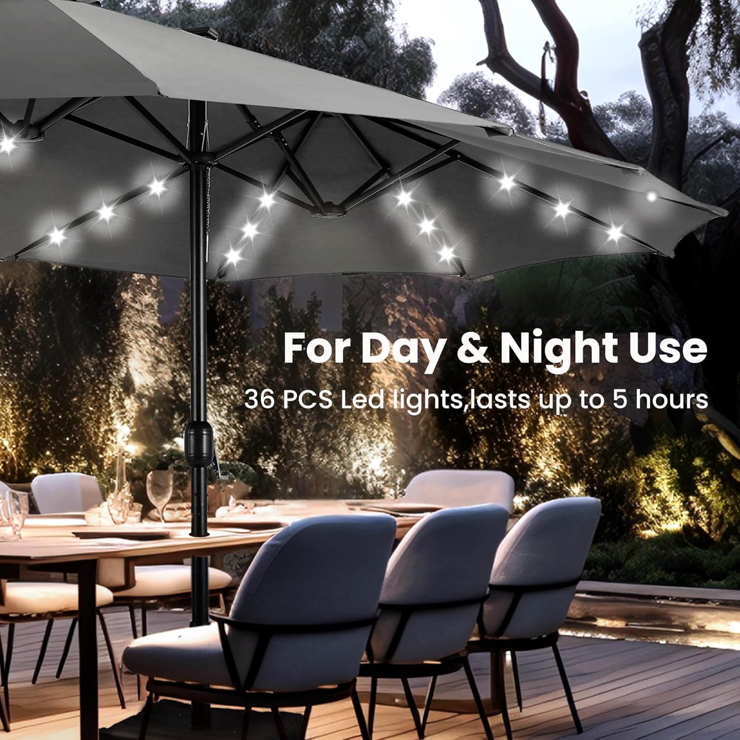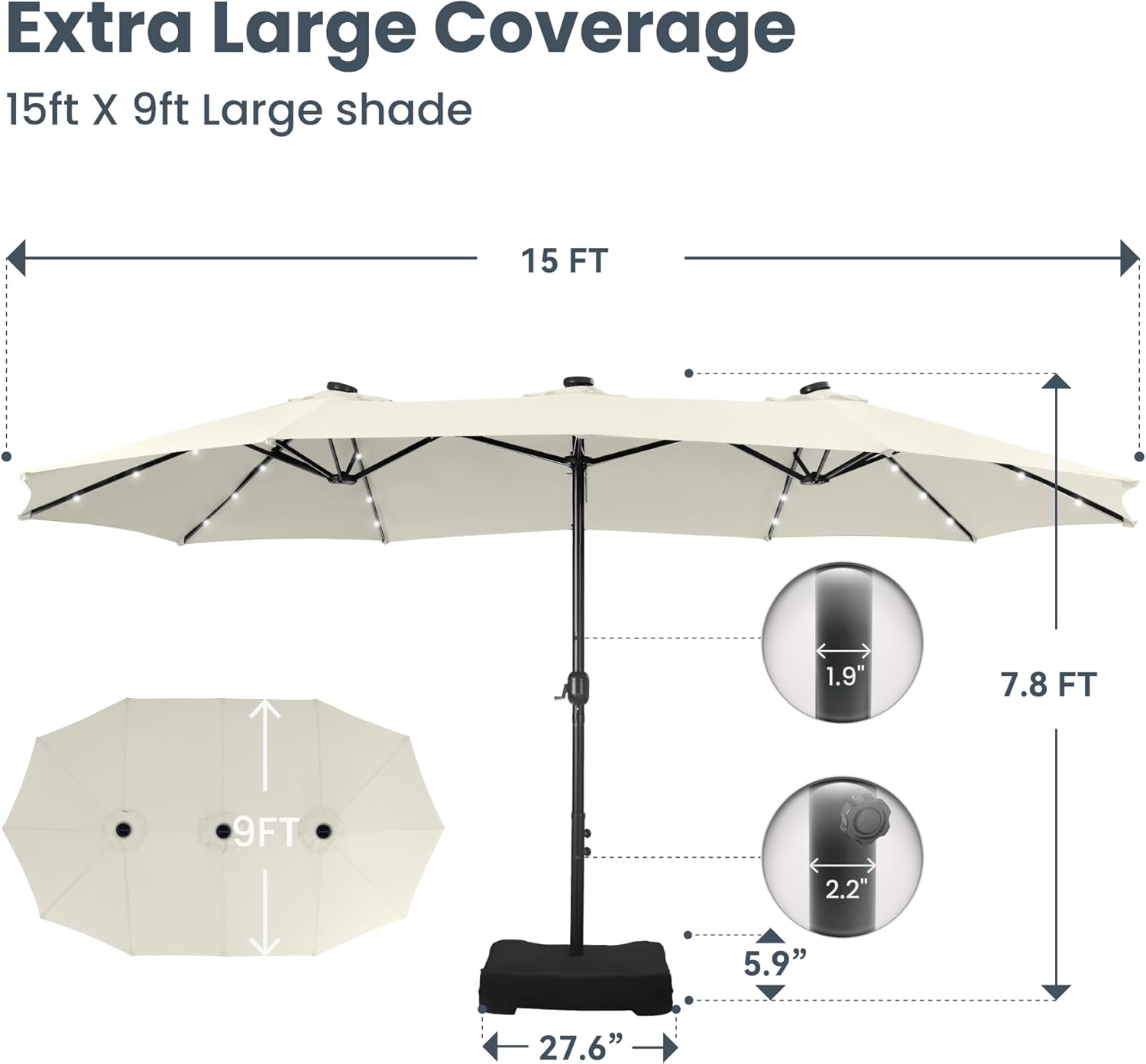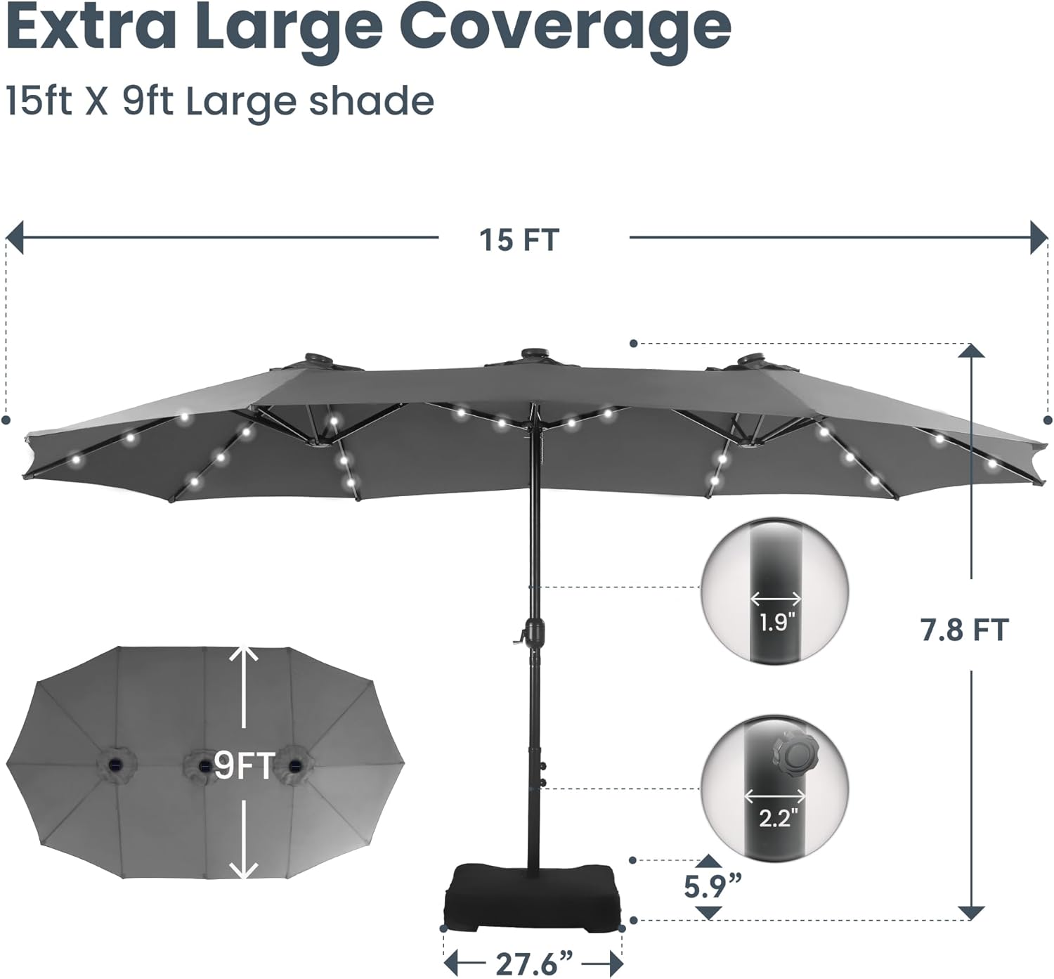 Extra Large Patio Lighted Umbrella: PHI VILLA this 15 ft large patio umbrella features a double-sided design, which gives you maximum shelter that brings you large shades for your outdoor enjoyment. Perfectly suitable for residential and commercial locations