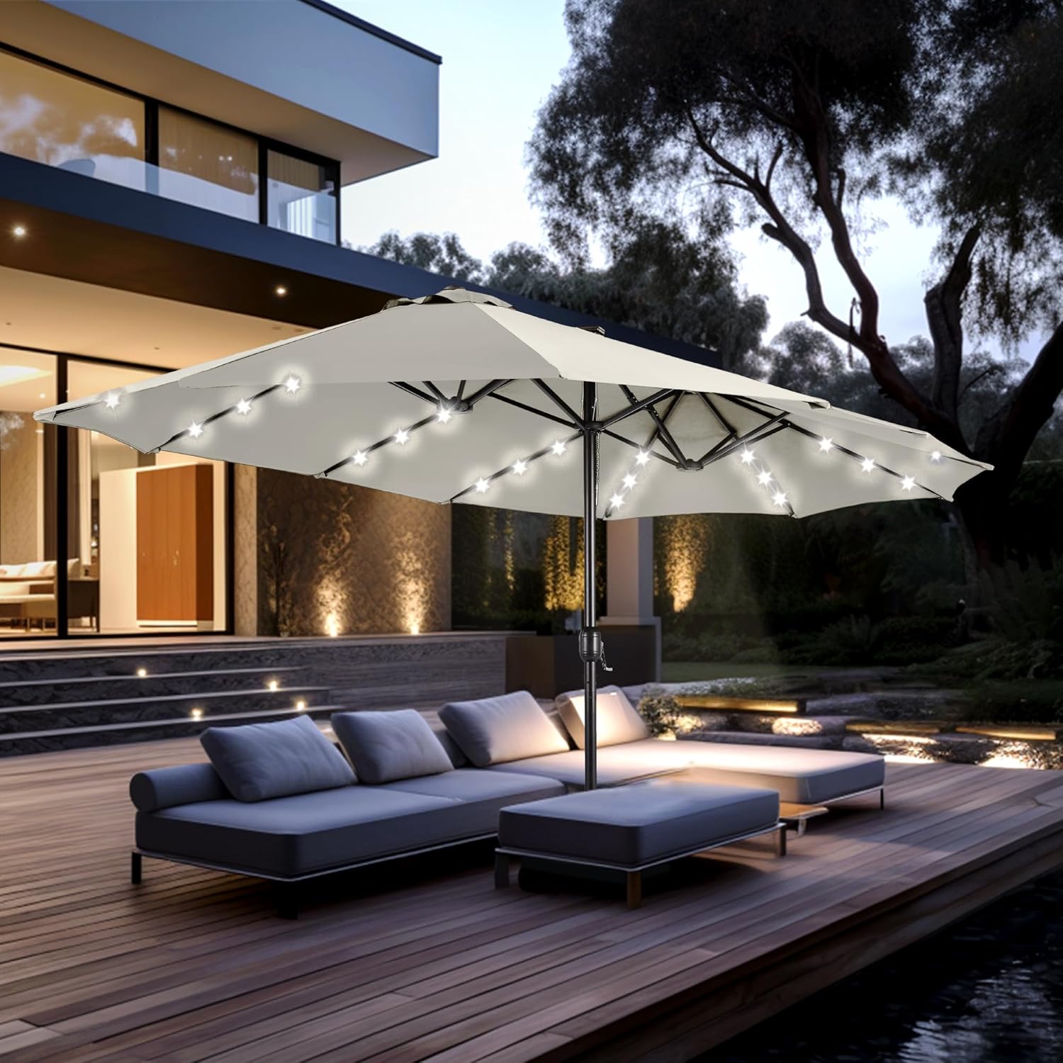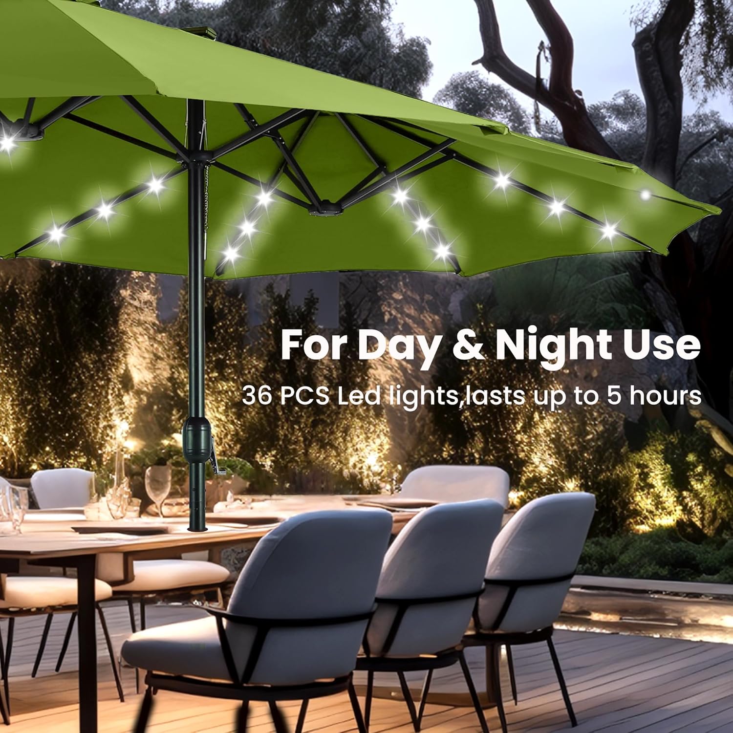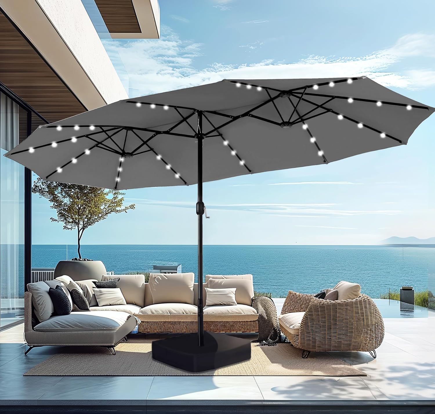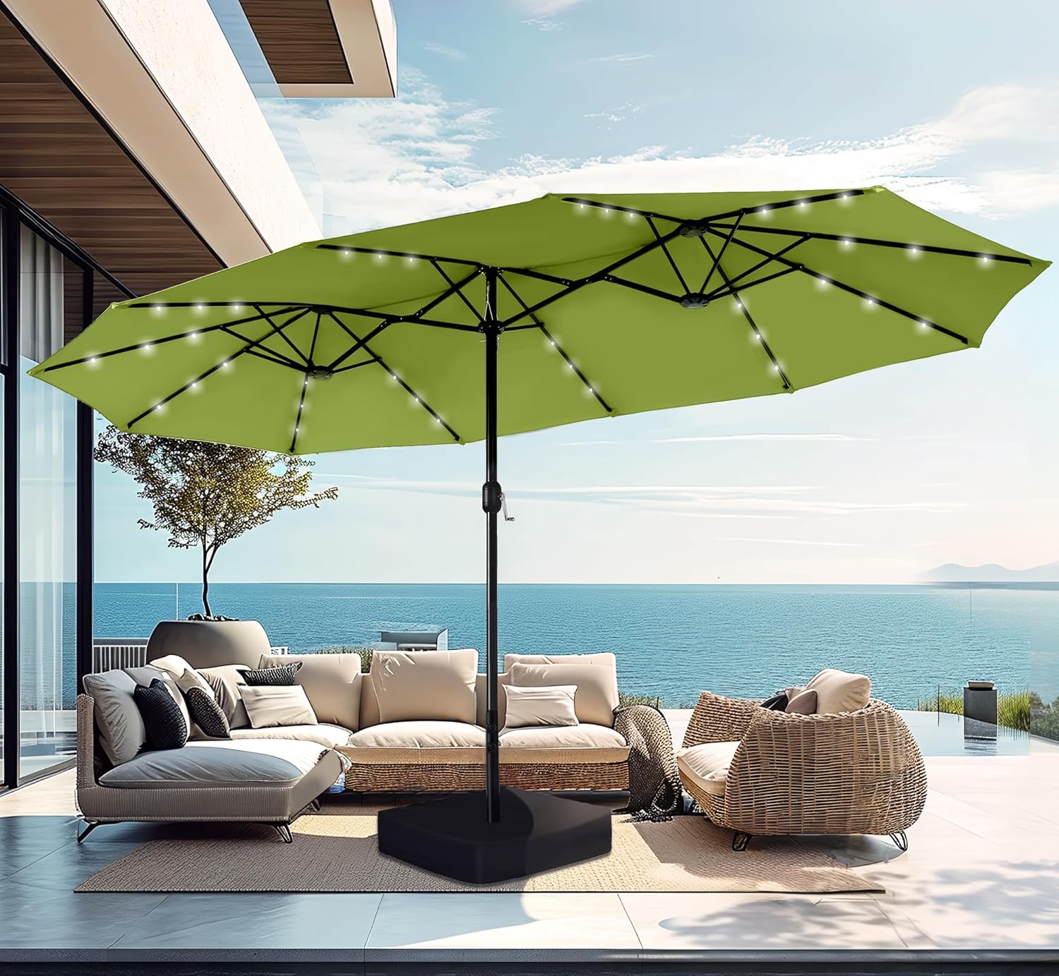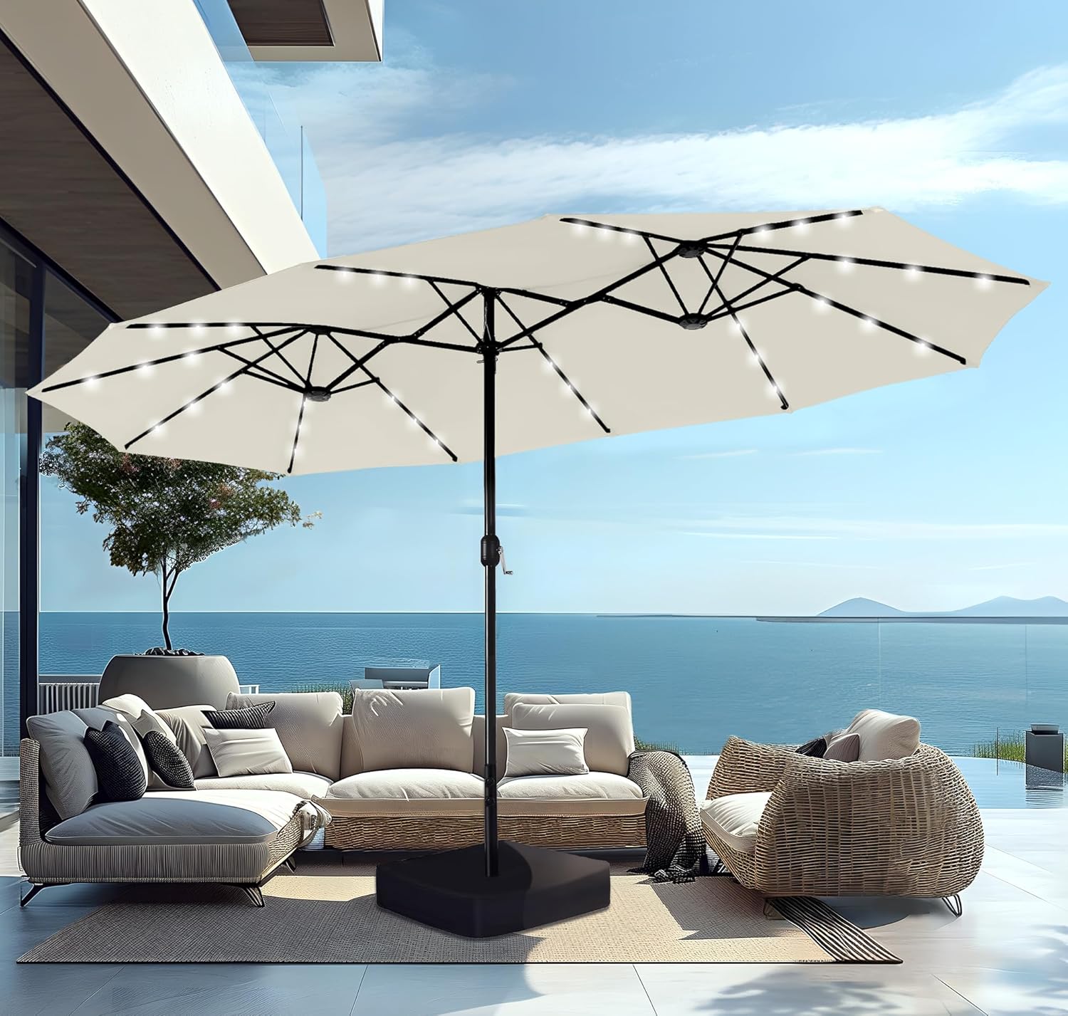 Extra Large Patio Lighted Umbrella: PHI VILLA this 15 ft large patio umbrella features a double-sided design, which gives you maximum shelter that brings you large shades for your outdoor enjoyment. Perfectly suitable for residential and commercial locations