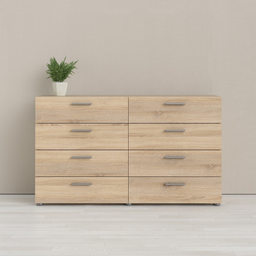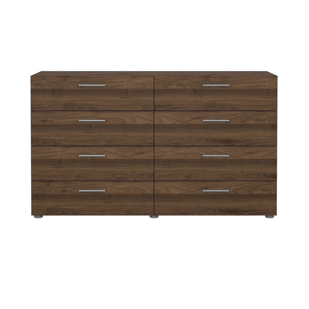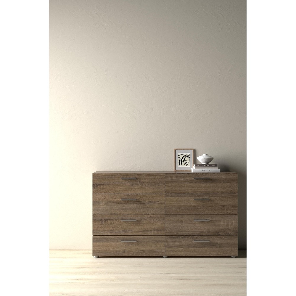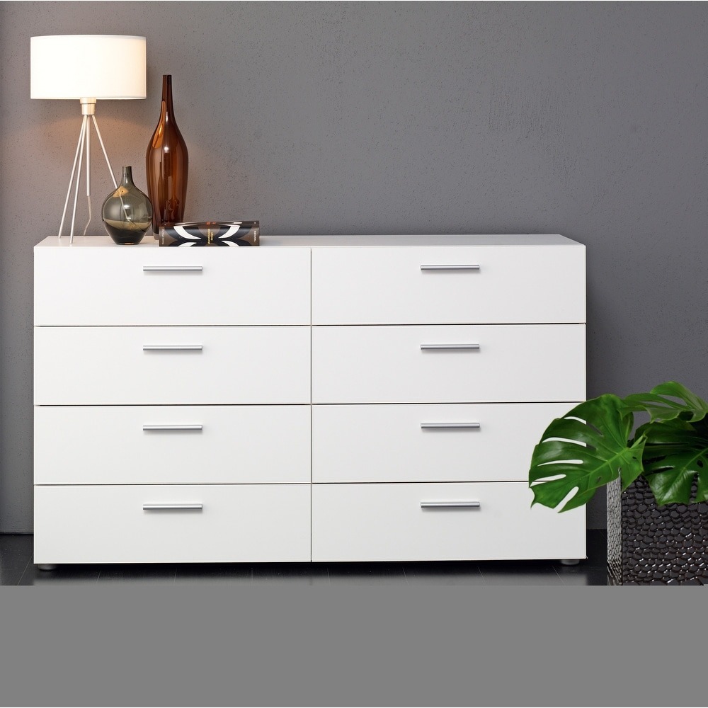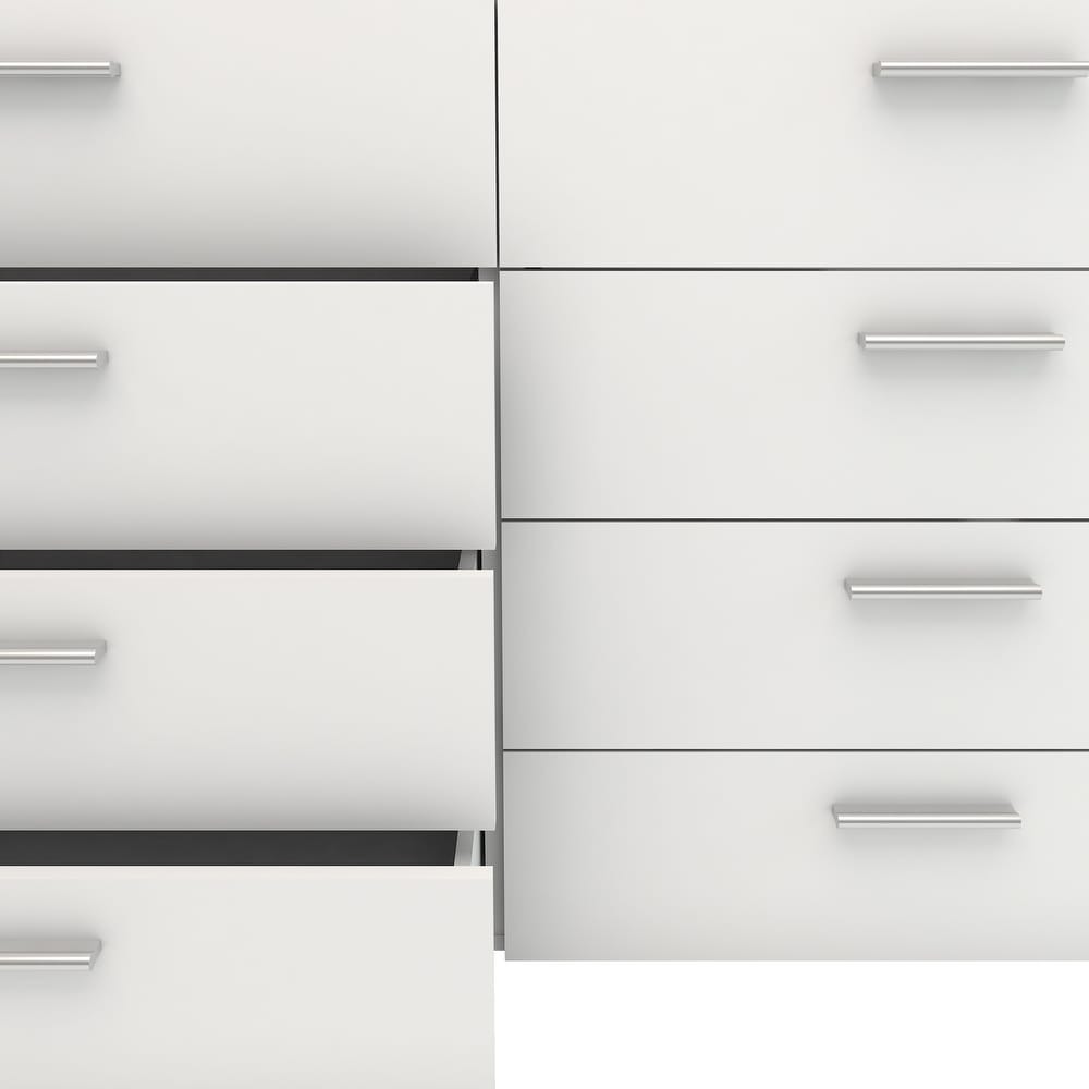 Experience the perfect blend of form and function with the Porch & Den Angus Space-saving 8-Drawer Double Dresser. This contemporary dresser features a sleek and sophisticated design with eight spacious drawers that will easily accommodate your clothes. The metal drawer runners and modern plastic silver color bar handles ensure that the drawers retract smoothly, while the tip-resistant hardware ensures maximum safety. Available in multiple colors, this dresser is perfect for small rooms and will complement any modern interior with its Scandinavian look and design.