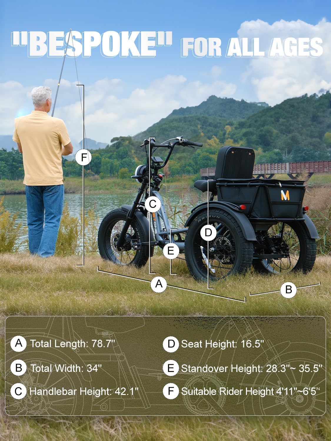| Age Range (Description) | Adults/Seniors (Elderly-friendly, Mobility-impaired-friendly) �� Recommended Rider Height: 4'11''~6'5''(150cm~195cm) �� 550 lbs (250 kg) Maximum Load Capacity |