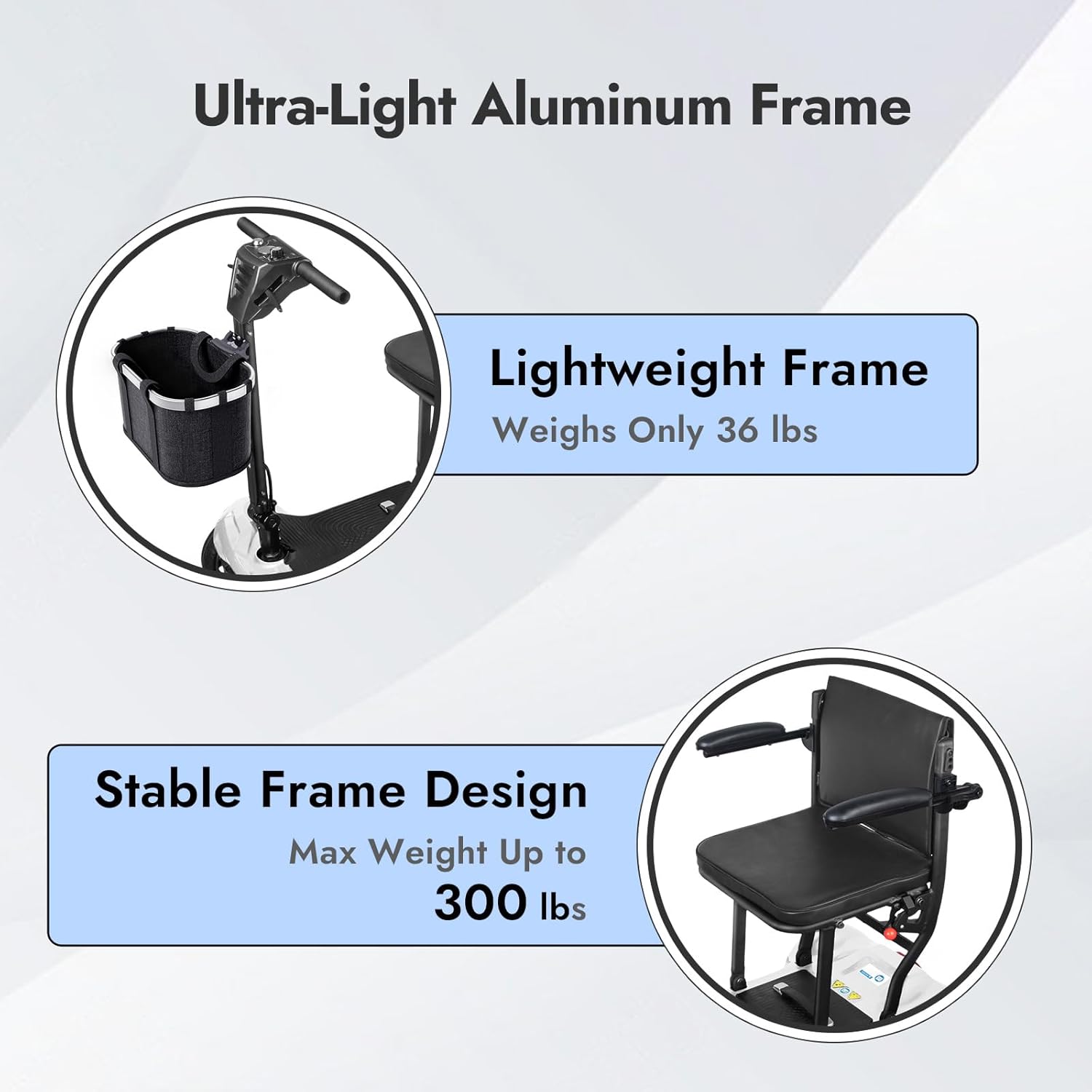 - ULTRALIGHT DESIGN: This electric scooter is compact and convenient, and can bear up to 300 pounds. But the overall weight is only 36 pounds, so both the elderly and girls can easily pick it up.