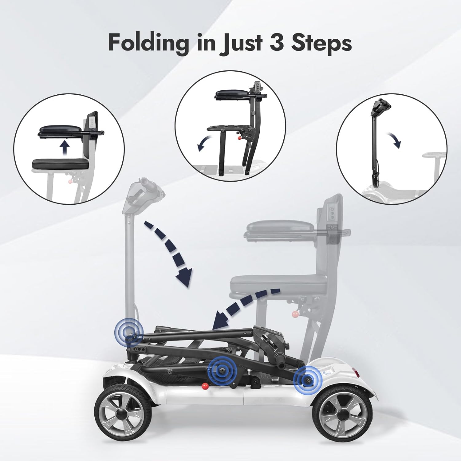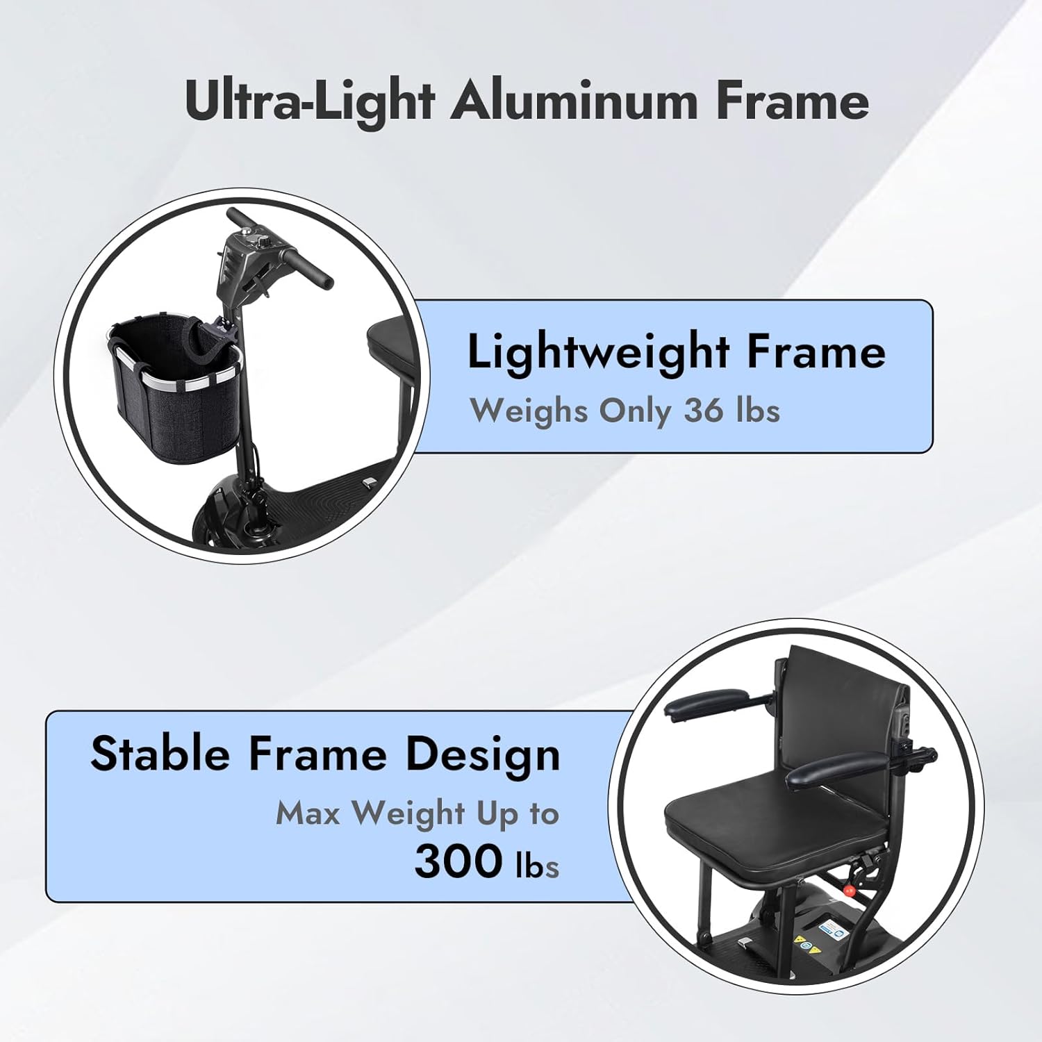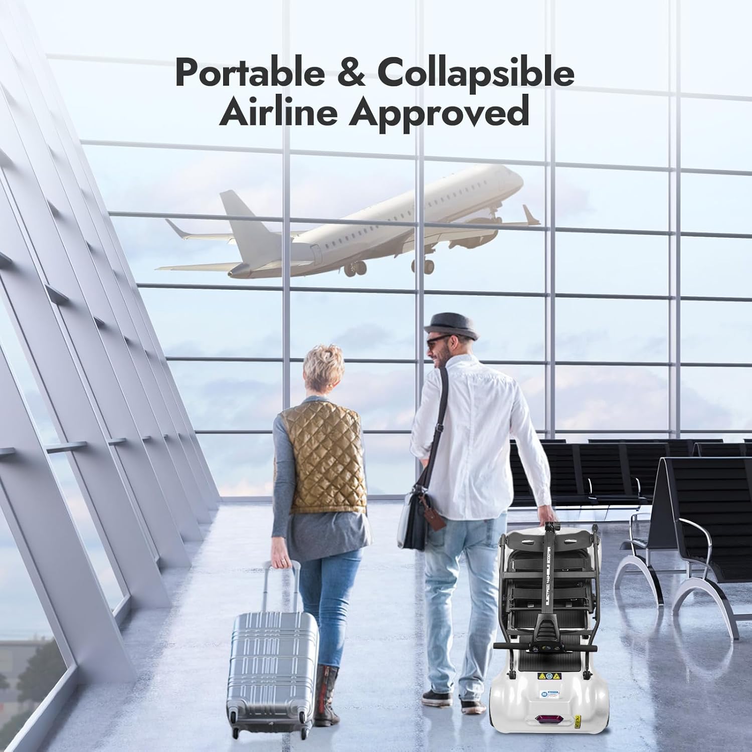 - COMPACT DESIGN: These electric scooters are lightweight and foldable, making them easy to store and transport in vehicles. They can be cleverly put into the trunk or back seat of a standard-sized vehicle, so you can carry your travel scooter for more convenient and comfortable travel.