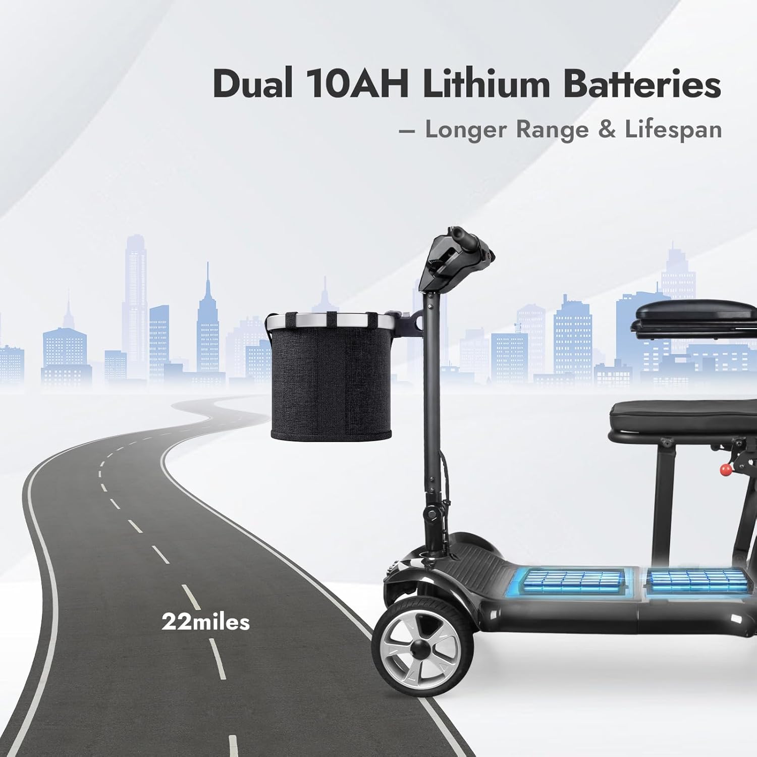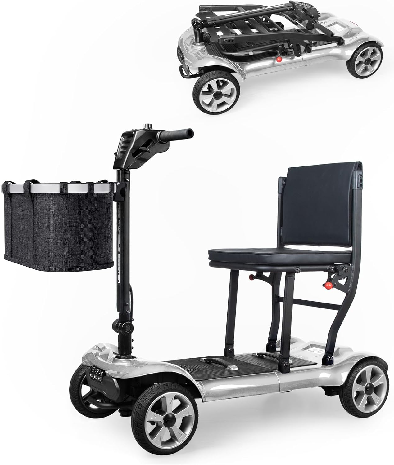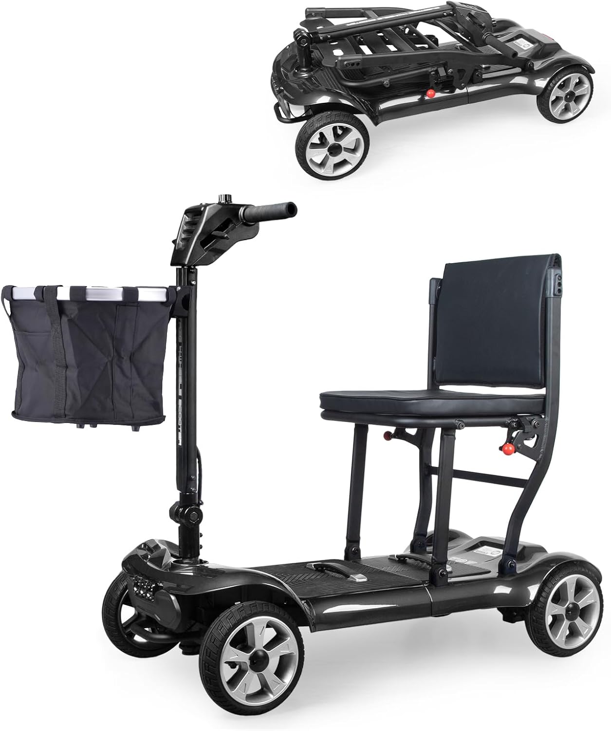 - COMPACT DESIGN: These electric scooters are lightweight and foldable, making them easy to store and transport in vehicles. They can be cleverly put into the trunk or back seat of a standard-sized vehicle, so you can carry your travel scooter for more convenient and comfortable travel.