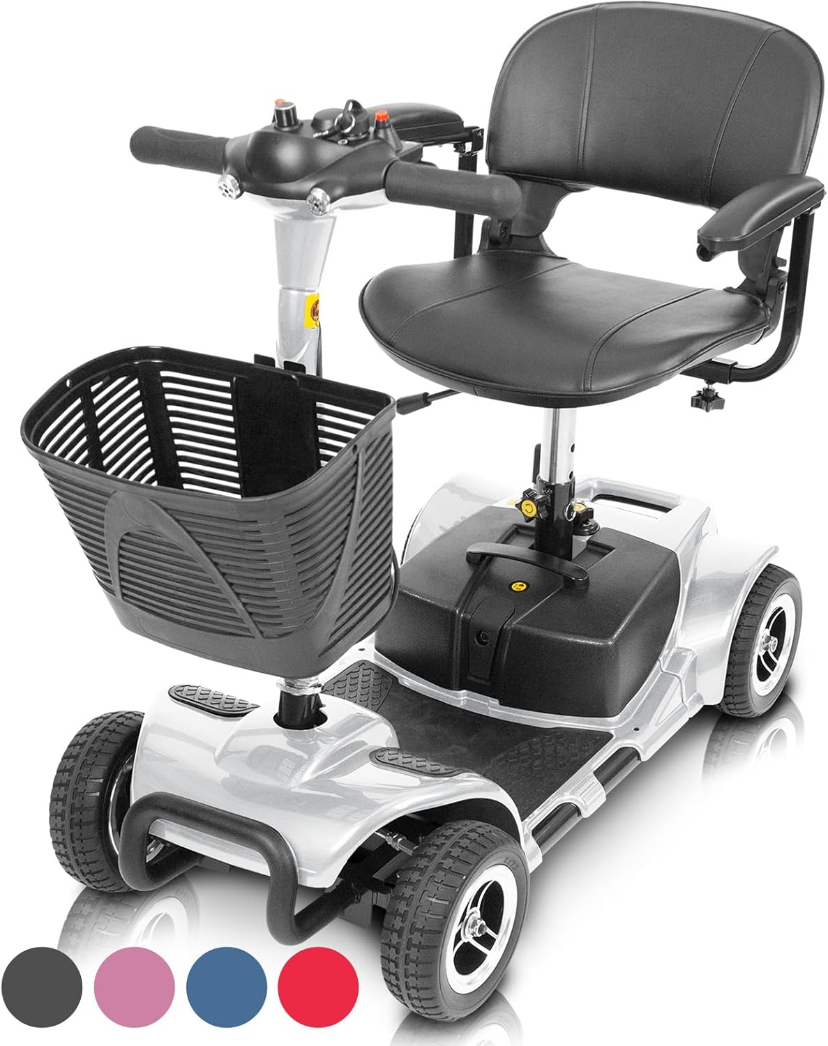 - SAFELY NAVIGATE SMOOTH SURFACES: Easily maneuver over smooth indoor surfaces and rough outdoor surface with the Vive 4-Wheel Mobility Scooter��with comfort and ease. Designed to safely support up to 265 pounds, the mobility scooter and its tires were engineered for durability and safety. Its easy-grip tires are flat-free, non-marking, and are 8��. Its maximum speed is 3.7 mph, and it has a driving distance up to 12.4 miles per charge.